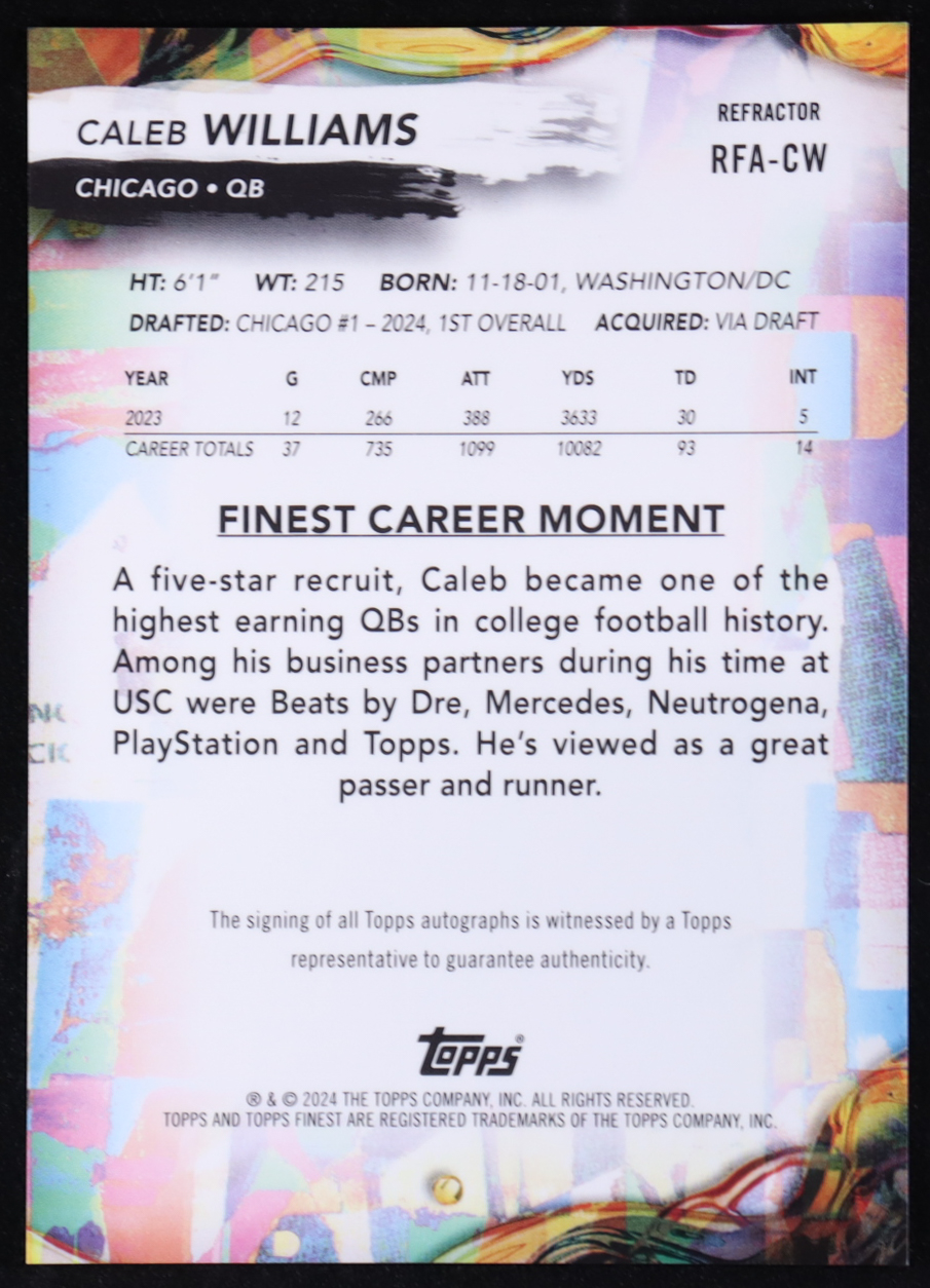 Caleb Williams 2024 Finest Rookie Autographs Refractors #RFACW RC