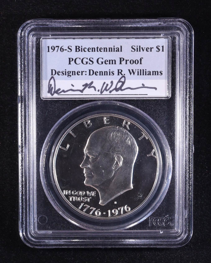 1976-S Eisenhower Bicentennial Silver $1 Dollar Dennis R. Williams Signature Label (PCGS GEM PROOF)