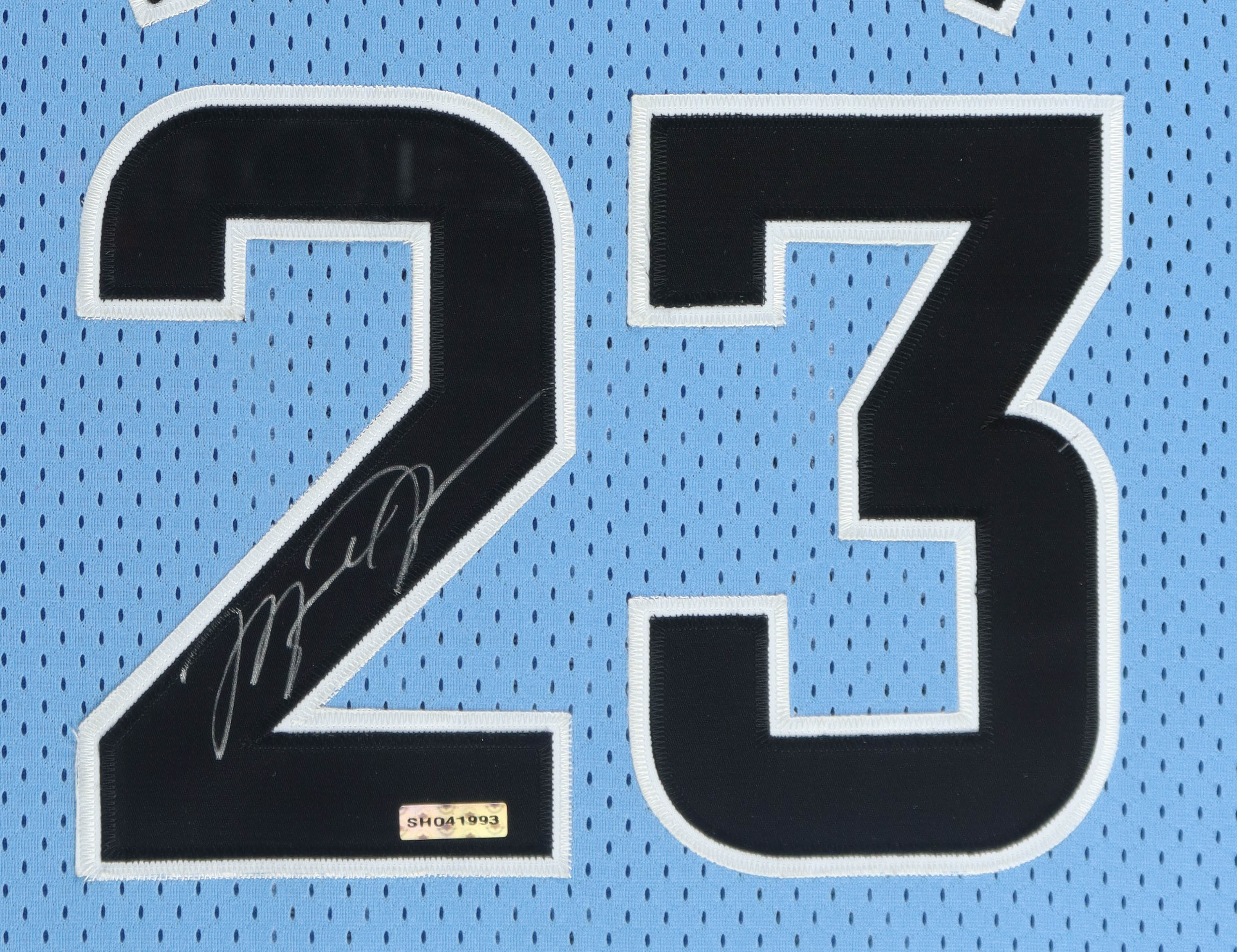Custom frame measures 34" x 42" in size and features a jersey that has been hand-signed by Michael Jordan (HOF). Please see photos for more details regarding the condition of the item as the frame shows signs of damage.