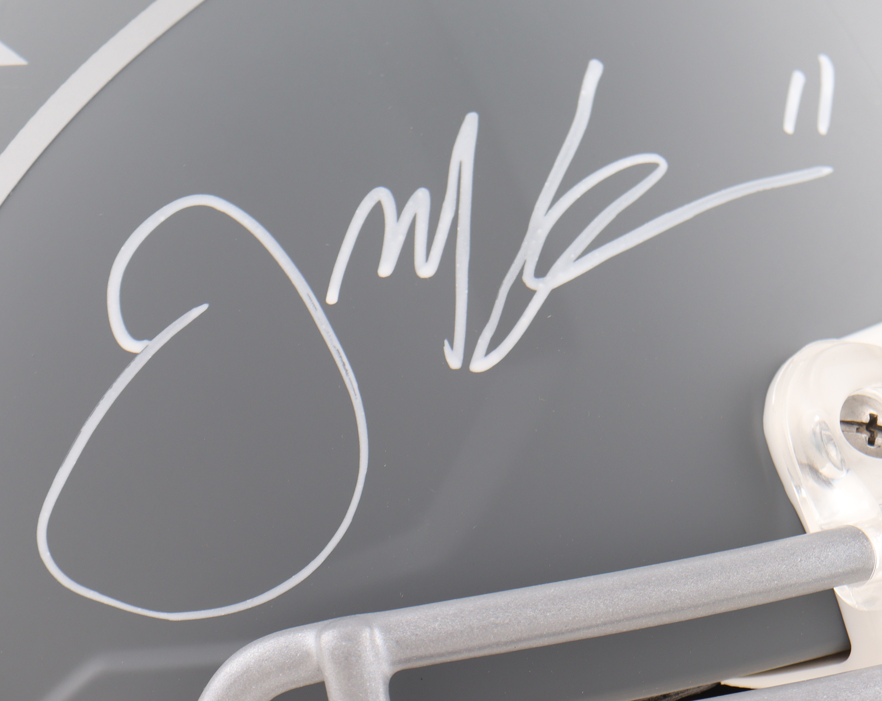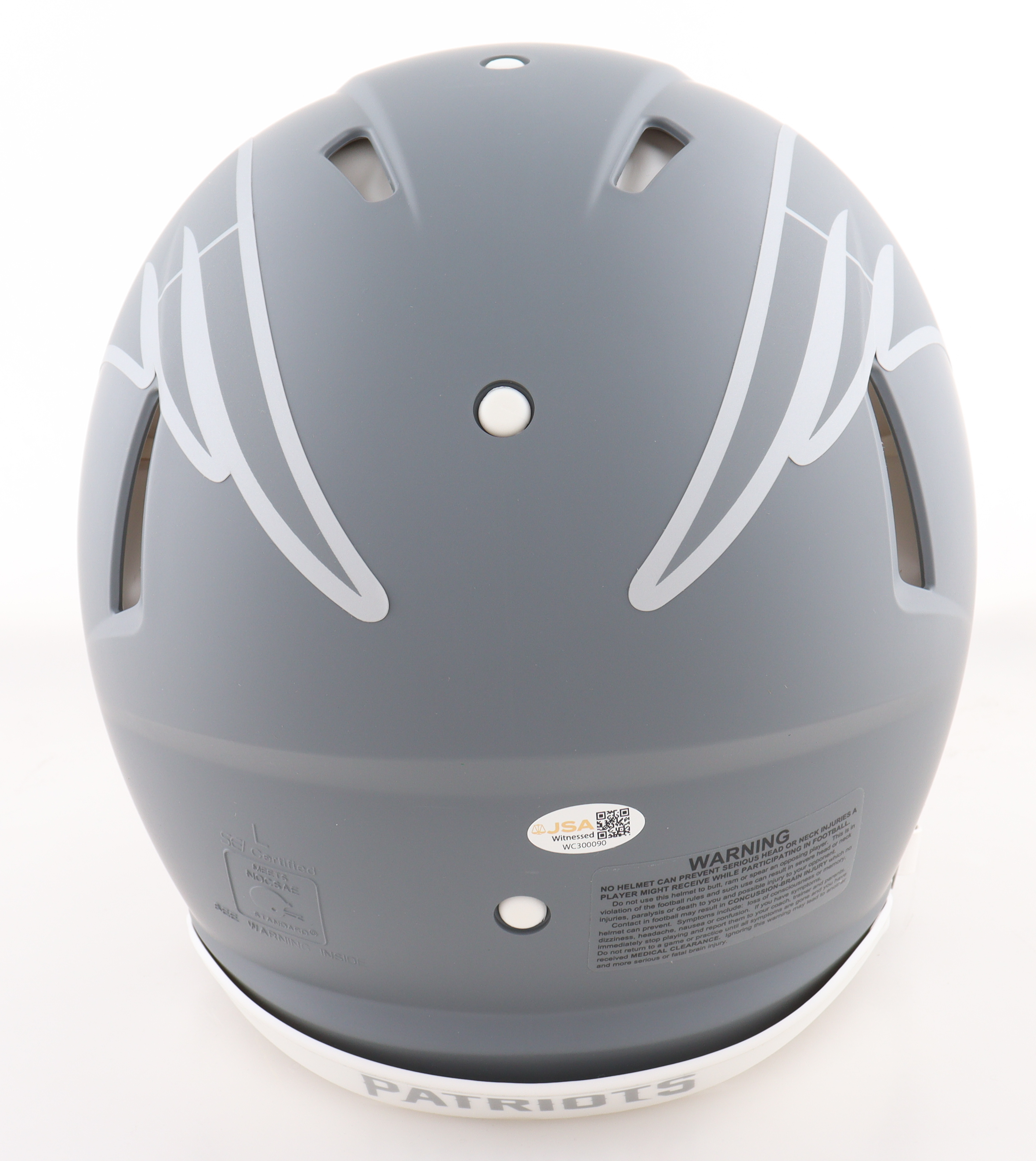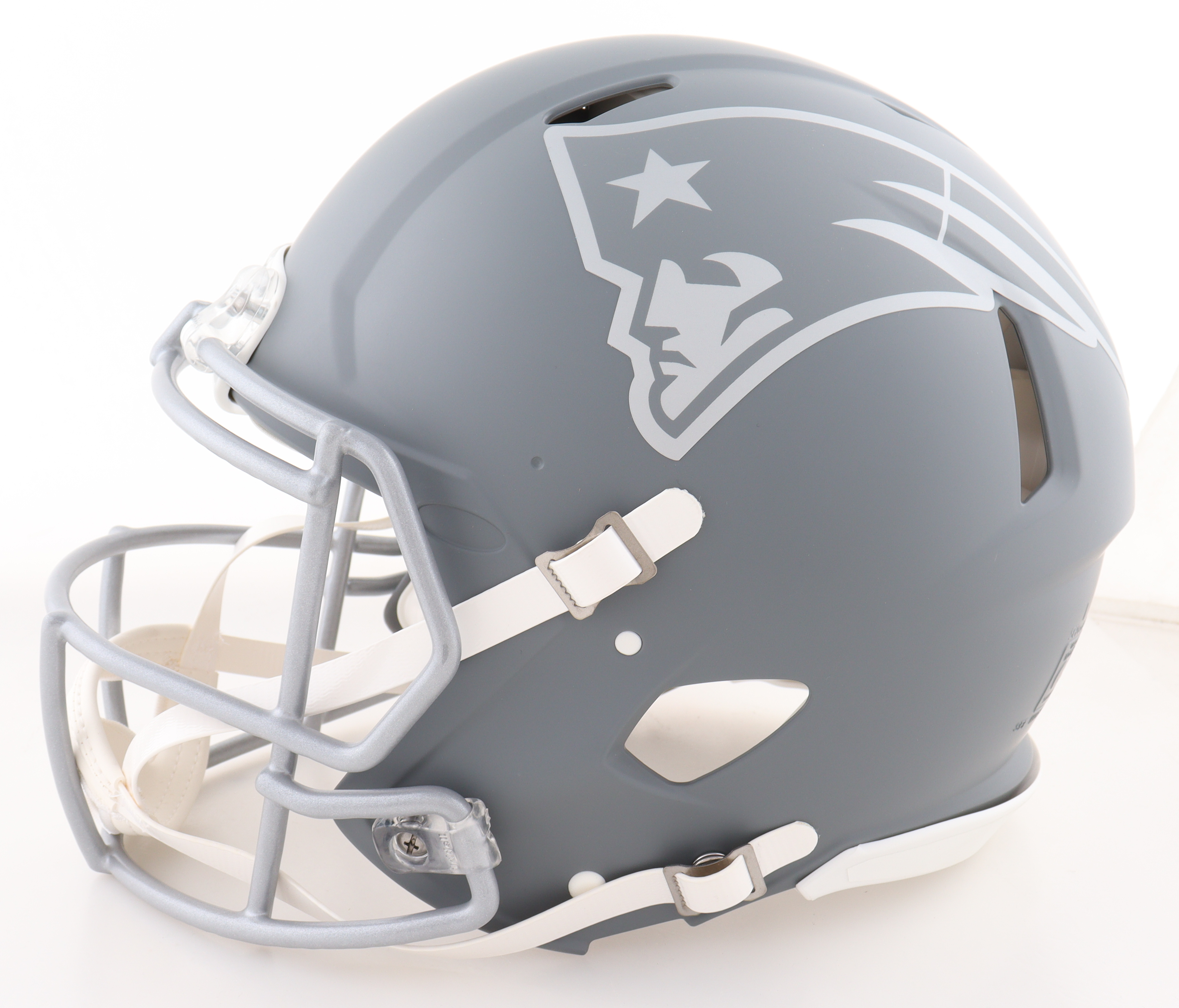 Riddell New England Patriots full-size authentic on-field slate alternate speed helmet. Hand-signed by Julian Edelman.
