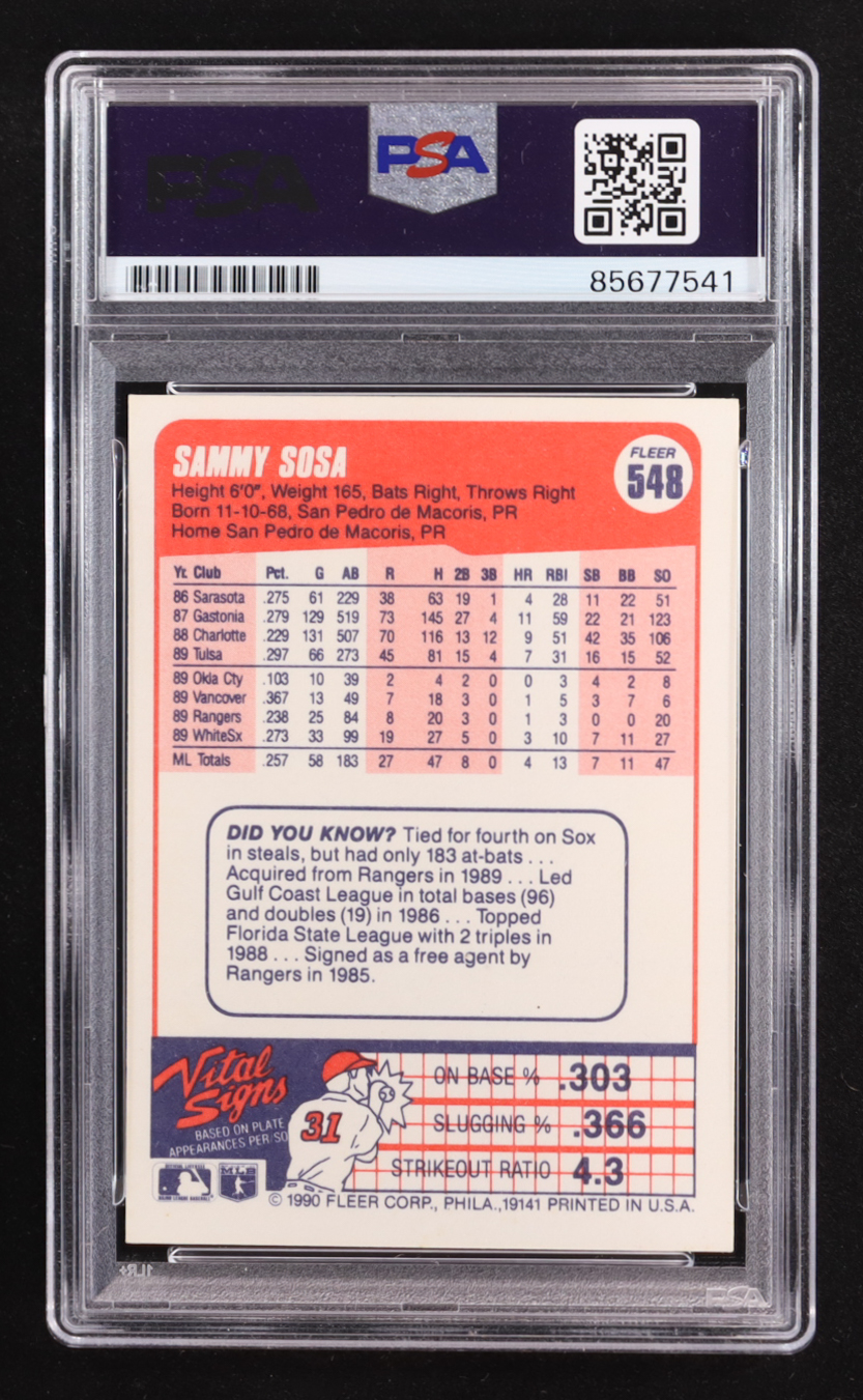 Sammy Sosa Signed 1990 Fleer #548 RC (PSA)