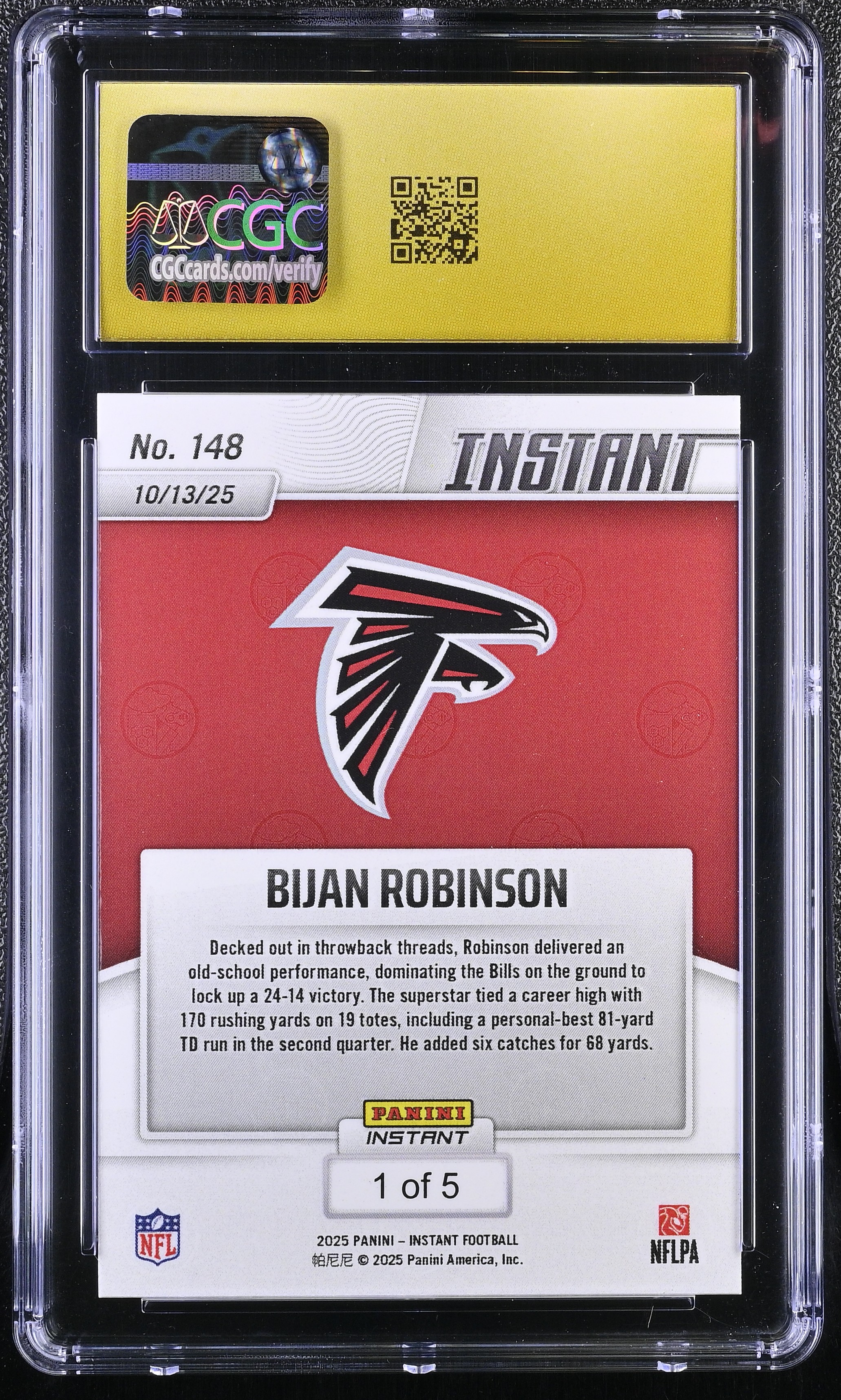 Bijan Robinson 2025 Panini Instant Lightning #148 (CGC 10 | Pristine Black Label)
