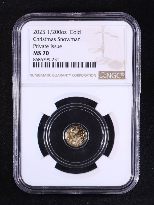 2025 Christmas Snowman 1/200 oz .999 Fine Gold Coin (NGC MS70)