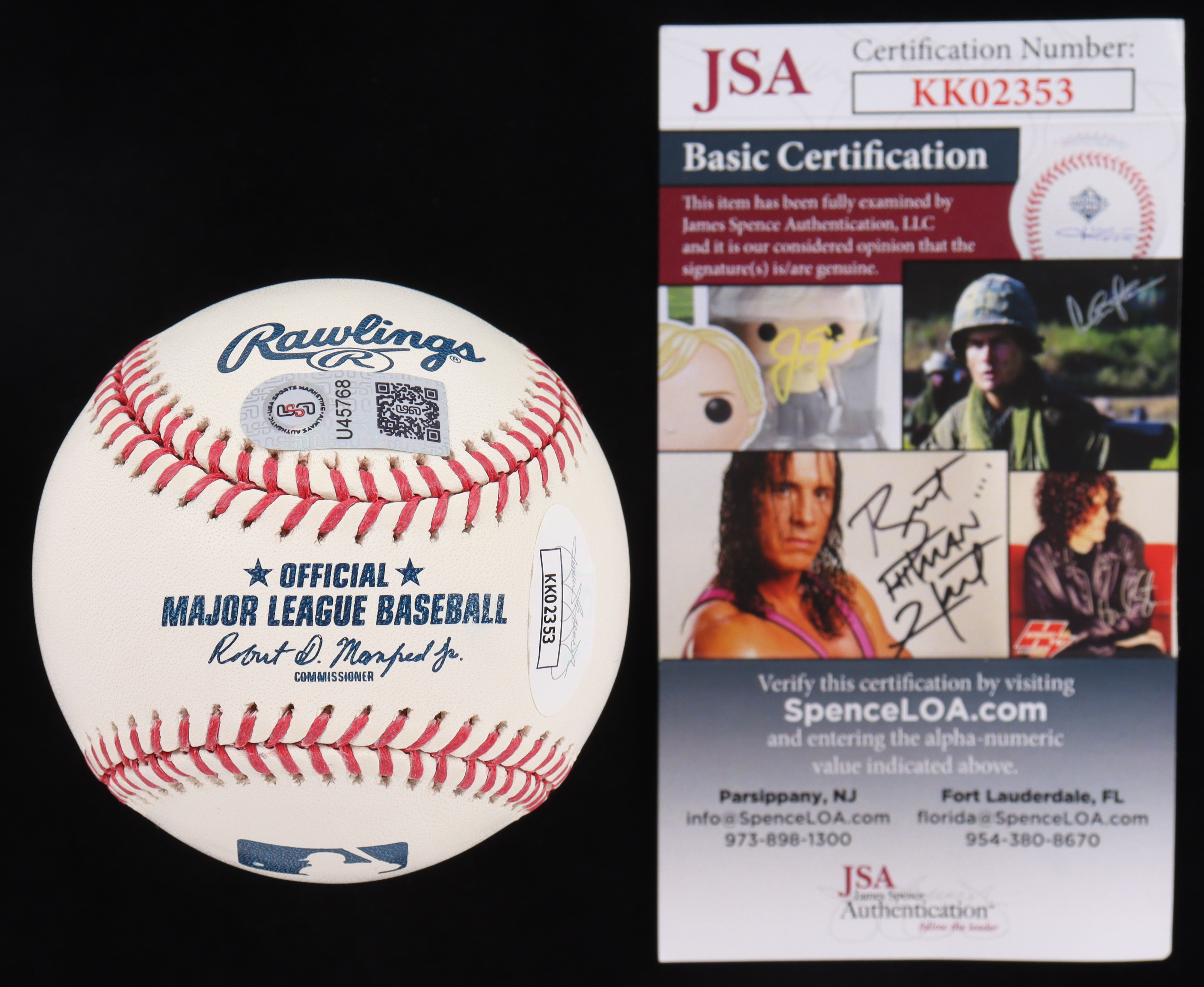 The autograph includes an official USA Sports Marketing (USA SM) hologram, as well as an official James Spence Authentication (JSA) hologram and matching COA for authenticity purposes.