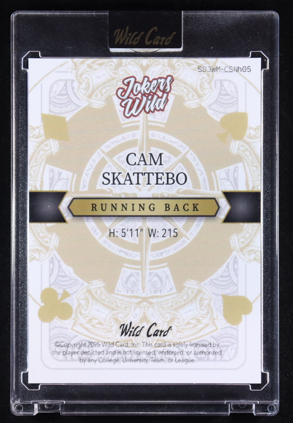 Cam Skattebo 2025 Wild Card Jokers Wild Joker #SDJWM-CSNH05 #1/1 RC