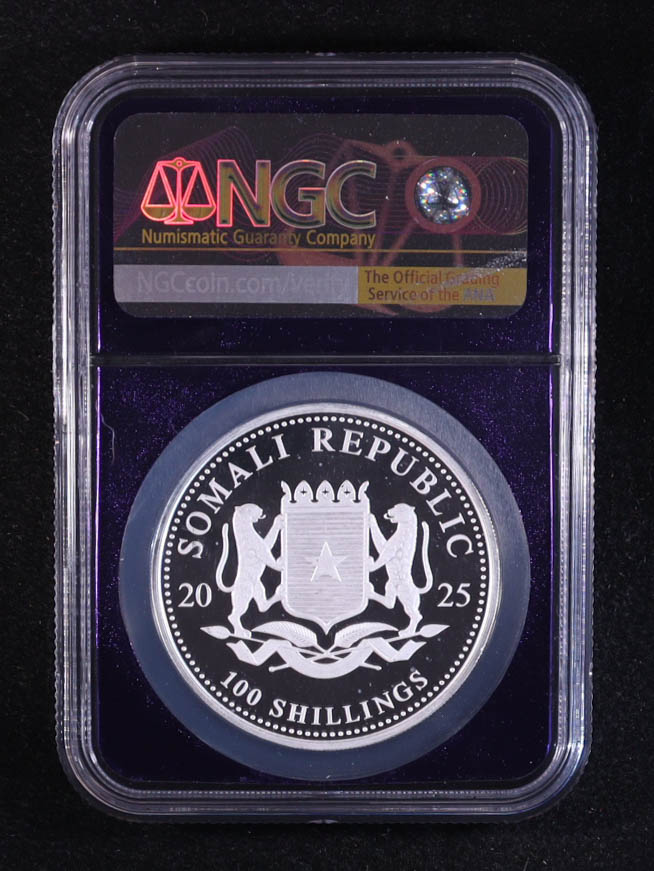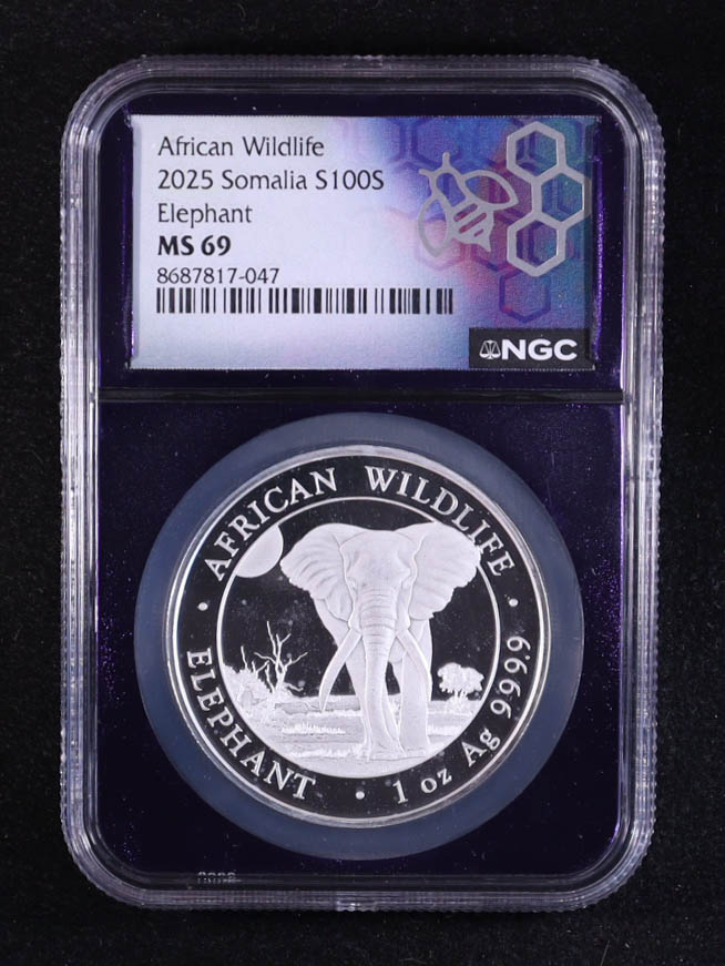 2025 Somalia 100S African Wildlife Series, Elephant - 1oz .9999 Fine Silver Coin (NGC MS69)