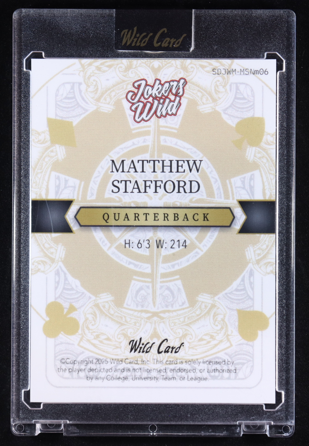 Matthew Stafford 2025 Wild Card Jokers Wild Joker Purple #SDJWM-MSNM06 #1/1