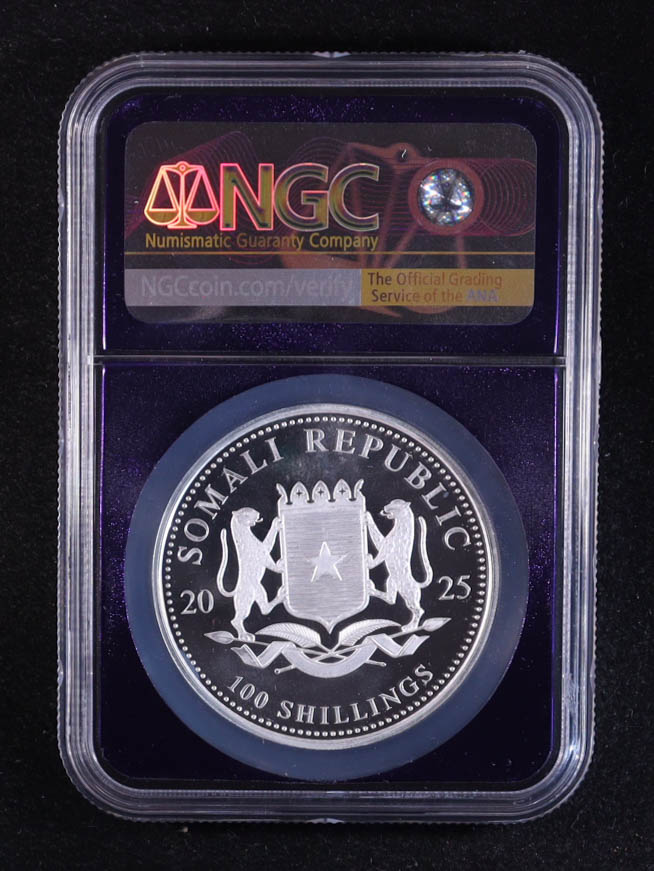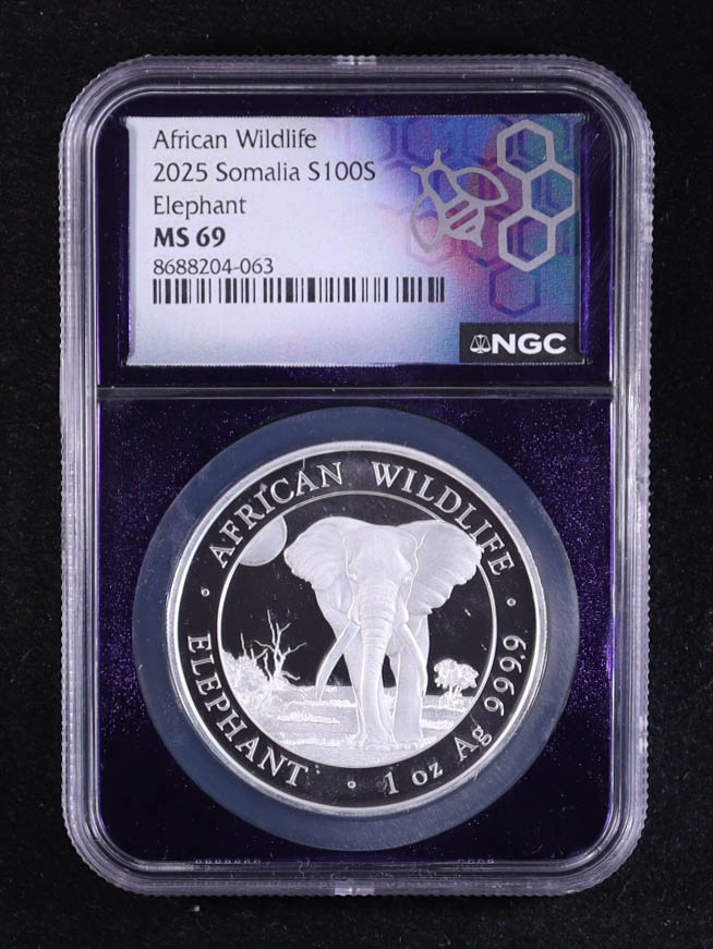 2025 Somalia 100S African Wildlife Series, Elephant - 1oz .9999 Fine Silver Coin (NGC MS69)