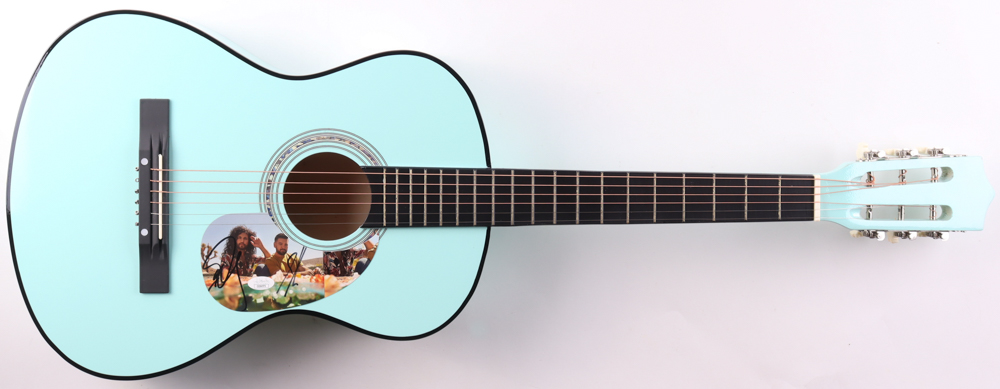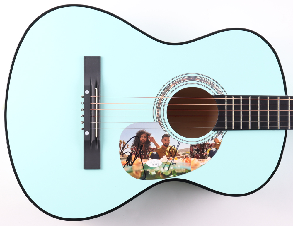 Acoustic guitar measures approximately 38" in length and has been hand-signed on a cut that has been repurposed as a pickguard by Dan Smyers and Shay Mooney.