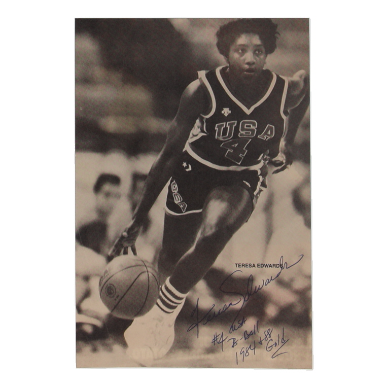 Magazine Cut measures approximately 5" x 7.5" in size and has been hand-signed and inscribed by Teresa Edwards (HOF).