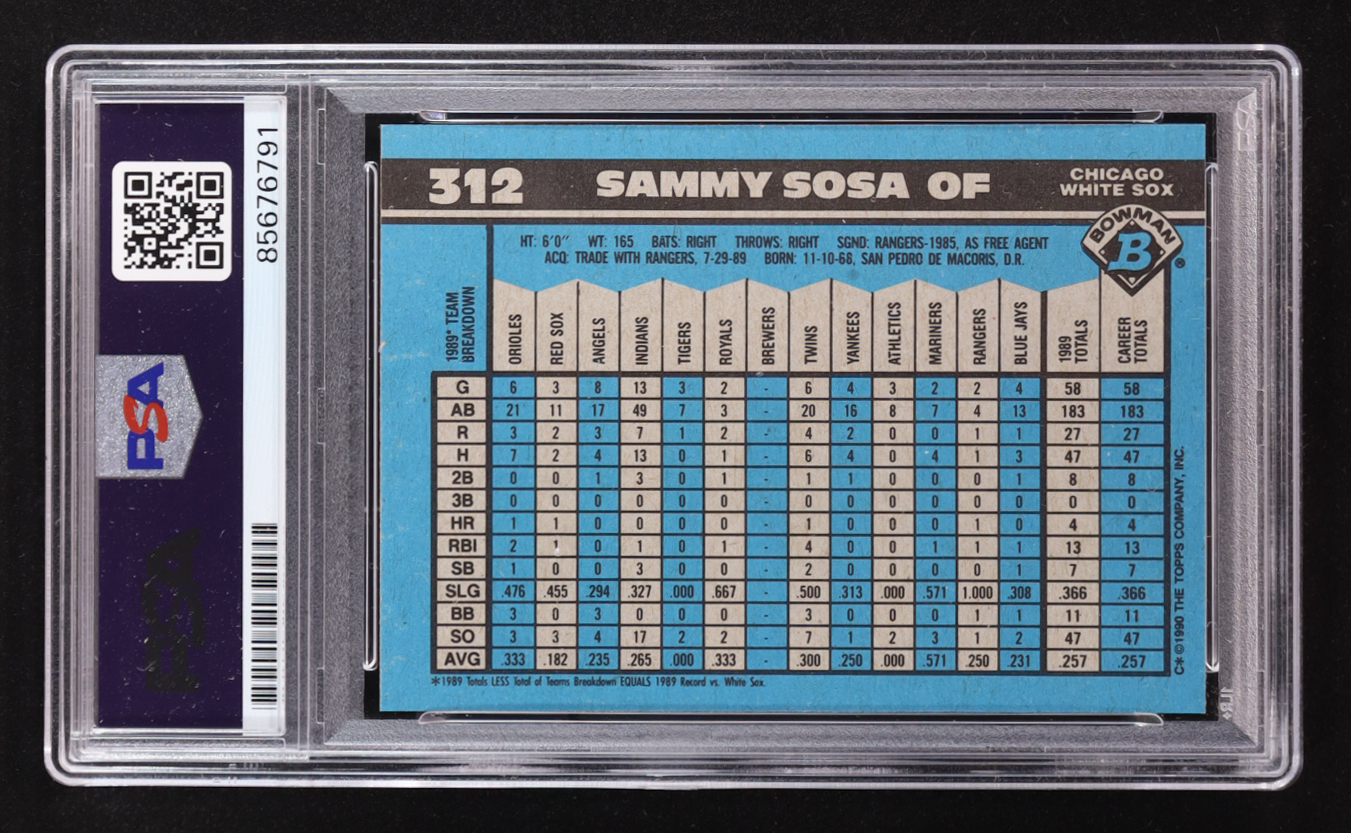 Sammy Sosa Signed 1989 Bowman #312 RC (PSA)