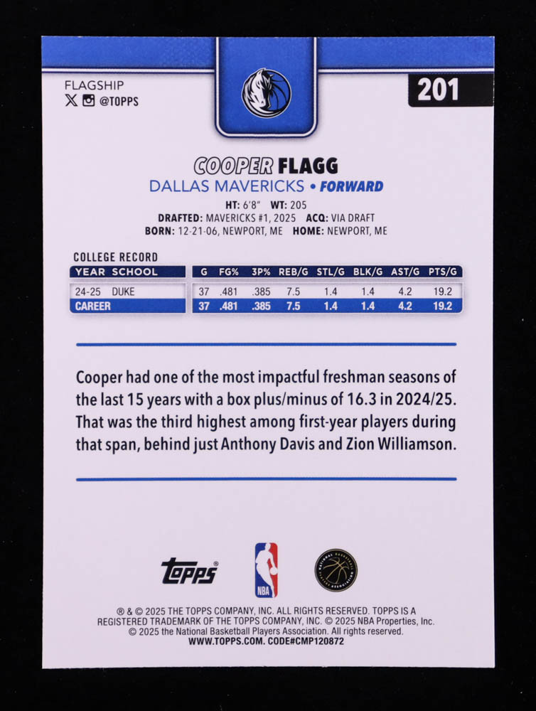 Cooper Flagg 2025-26 Topps #201 RC