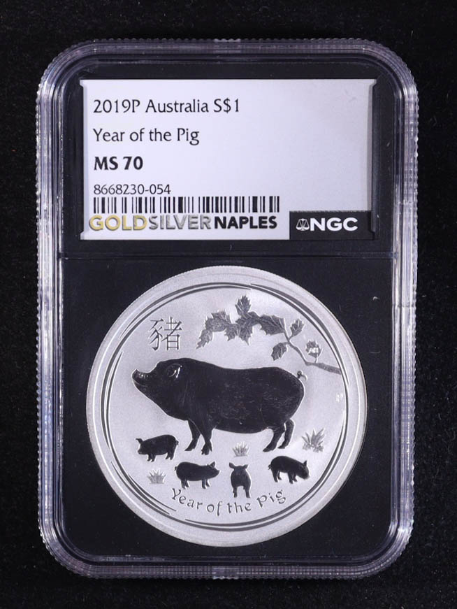2019-P Australia $1 Year of the Pig 1oz .999 Fine Silver Coin (NGC MS70)