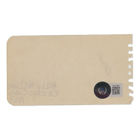 Cut measures approximately 2.5" x 4.5" in size and has been hand-signed by Billy Williams (Chicago Cubs, HOF). Please note, the inscription on the cut was written by an unknown person.