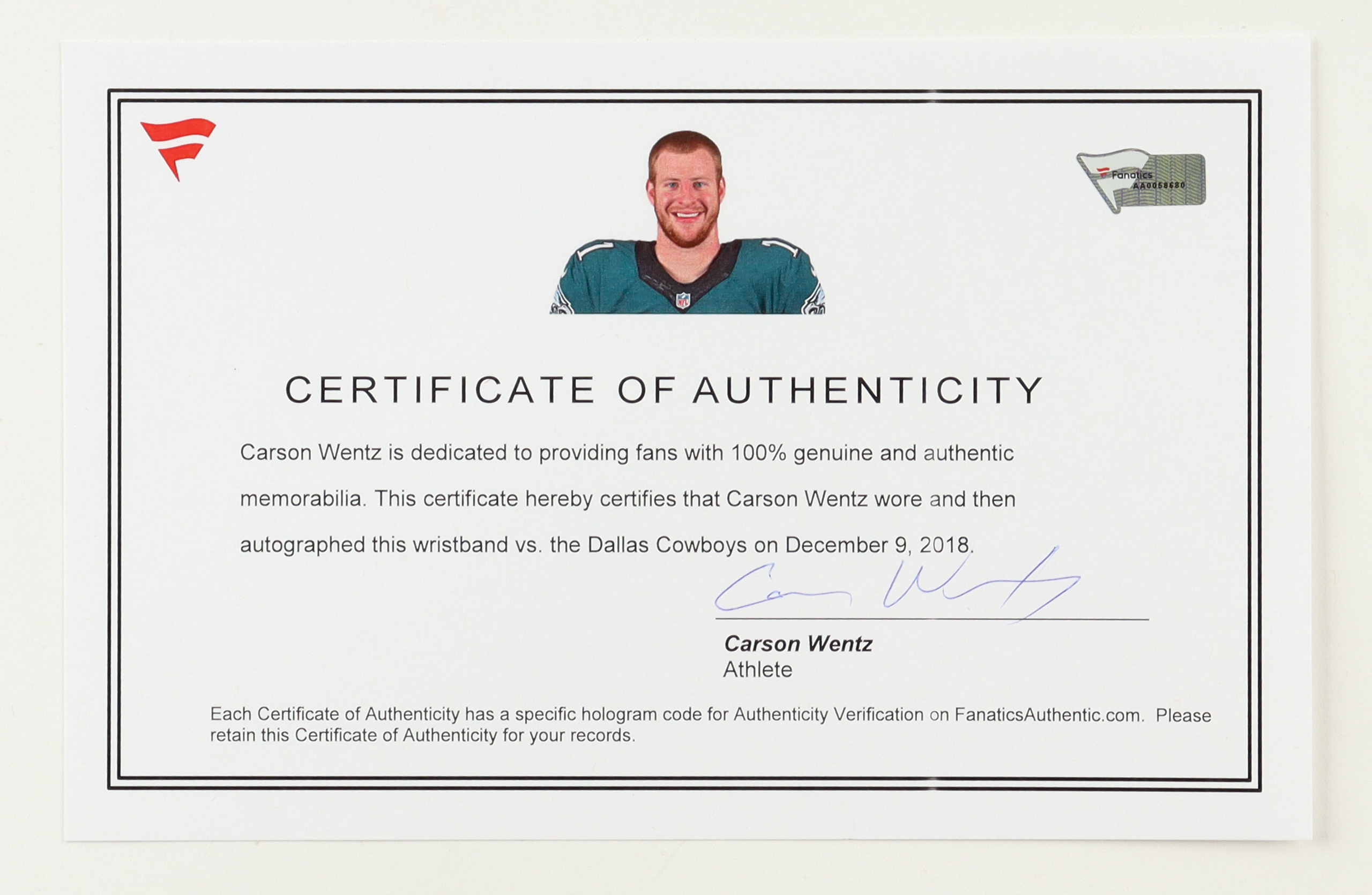 COA Signed By Carson Wentz
