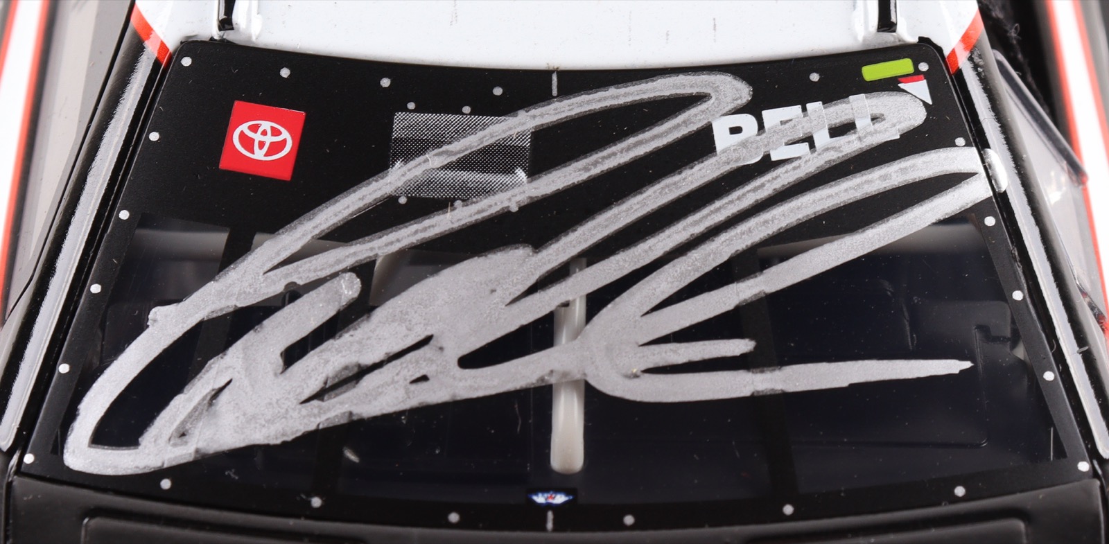 NASCAR die-cast car has been hand-signed on the windshield by Christopher Bell.