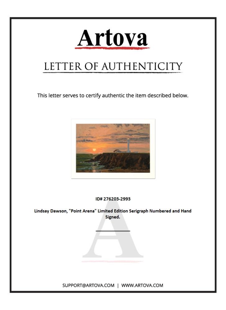 Lindsay Dawson - "Point Arena" is a limited edition serigraph on paper, numbered and hand signed by the artist! Includes Certificate of Authenticity! Measures approx. 29.5" x 41" (with border), 24" x 36" (image).