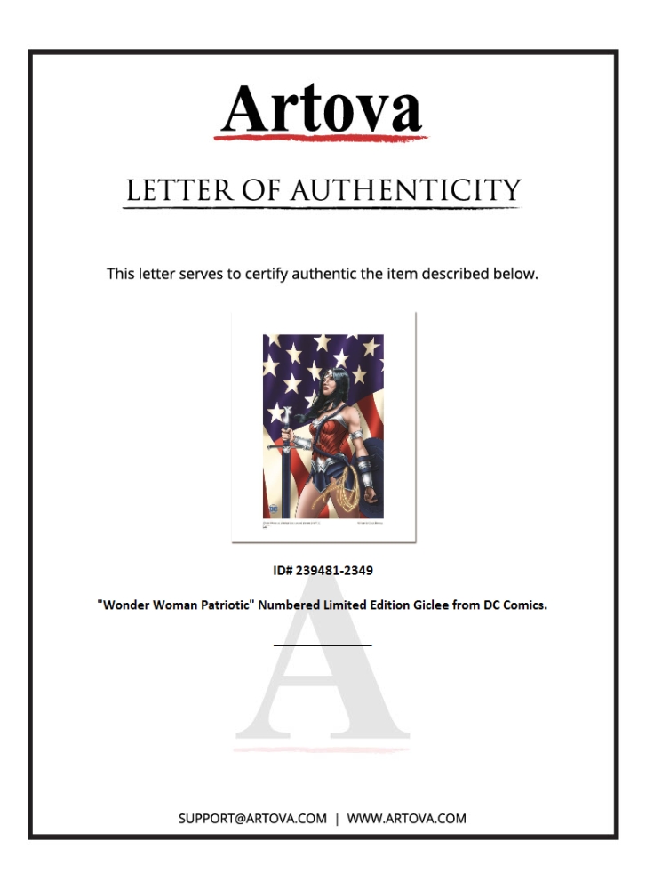 "Wonder Woman Patriotic" LE 16x20 Giclee on Paper by DC Comics (Artova)