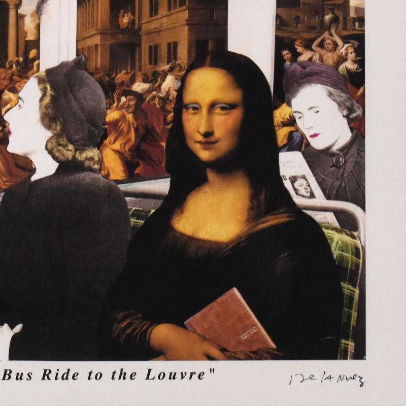 "Bus Ride to the Louvre" is a limited edition artist proof on paper by Nelson De La Nuez, numbered and hand signed by the artist. Includes Letter of Authenticity. Measures approx. 12.5" x 10".