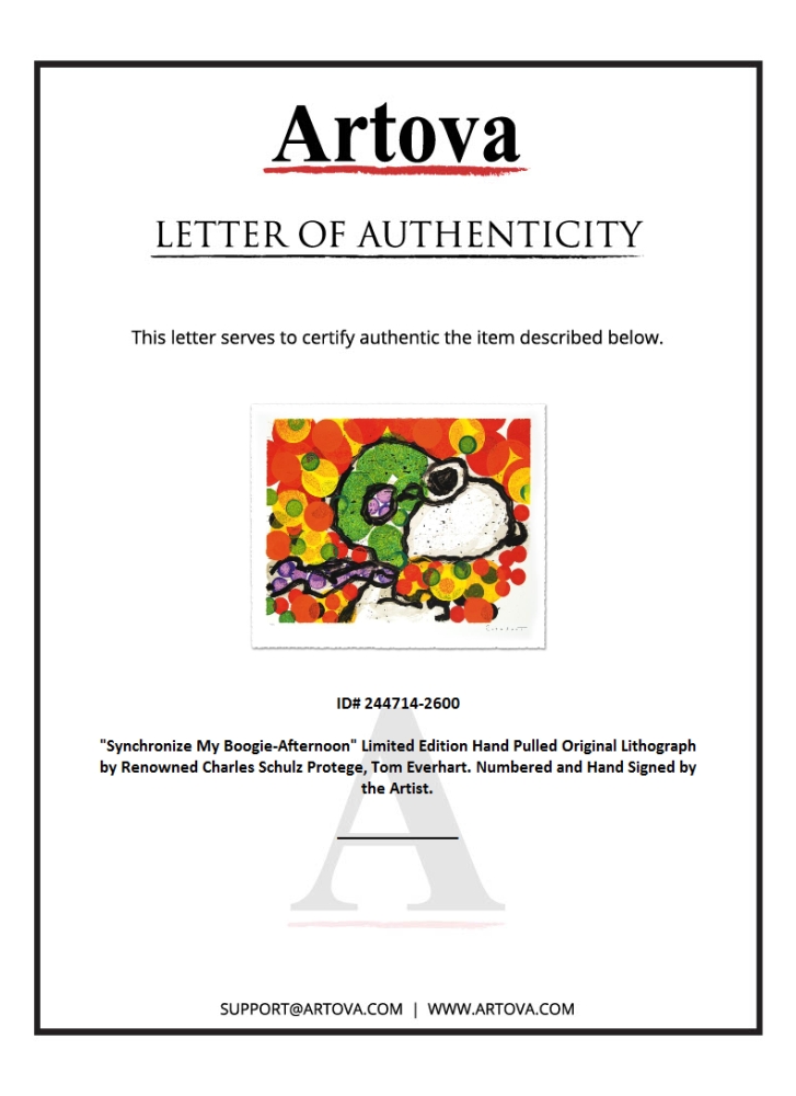 "Synchronize My Boogie - Afternoon" is a limited edition hand pulled original lithograph on museum quality deckle-edge paper, numbered and hand-signed by Tom Everhart. This is one of the final Everhart editions to be created on a rare, antique Marinoni Voirin lithograph press that dates back to the 1800's. Includes certificate of authenticity. Measures approx. 34" x 27.5" (with border); 30.5" x 23" (image).