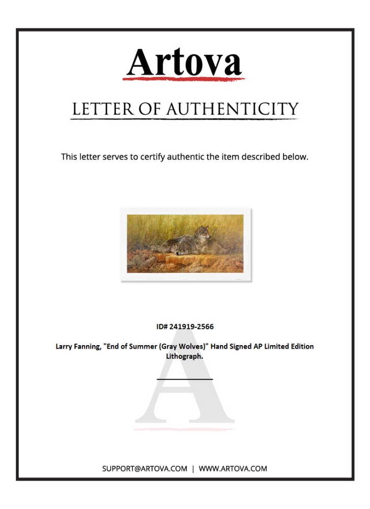 "End of Summer (Gray Wolves)" LE 32x16 Lithograph by Larry Fanning (Artova)