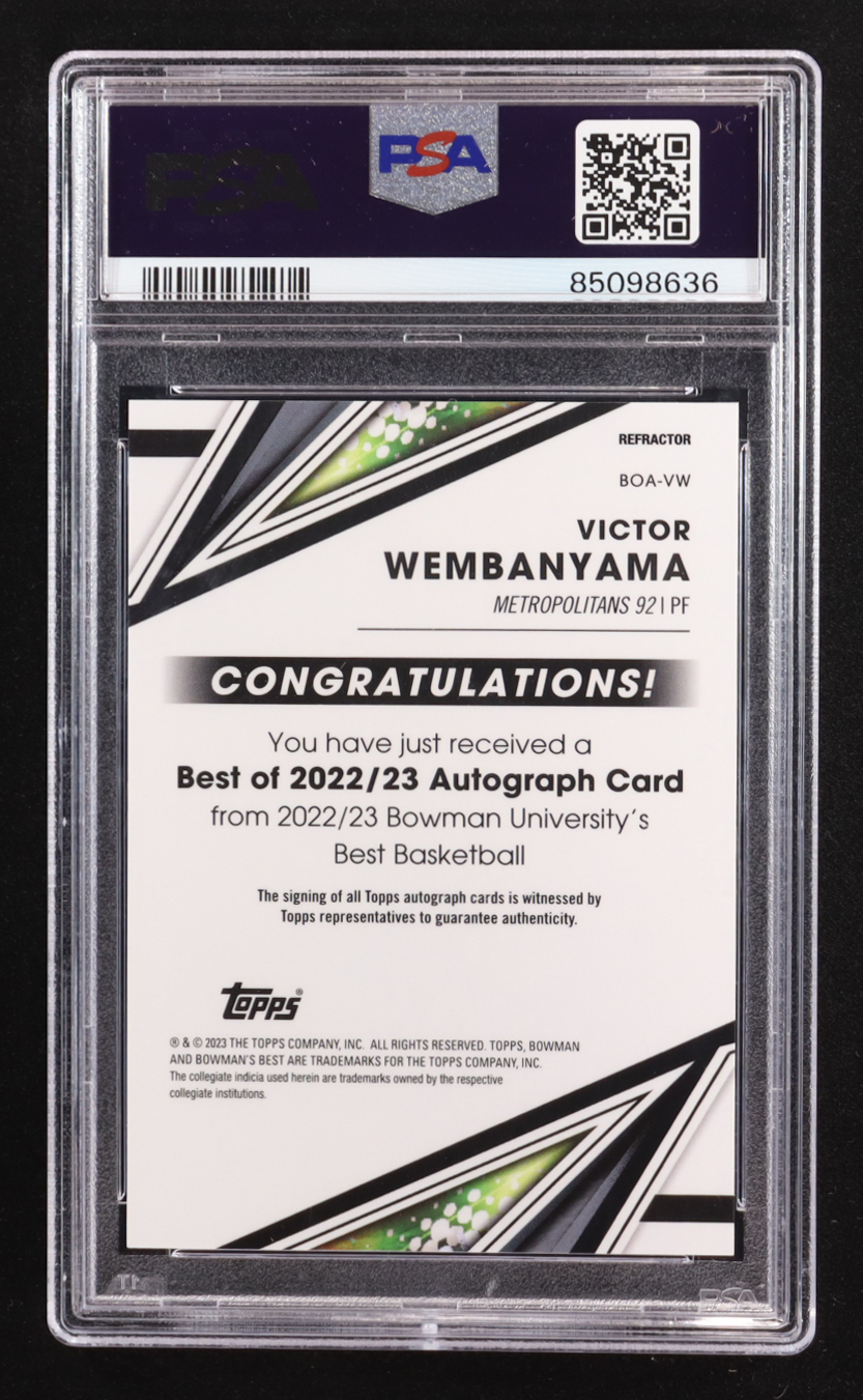 Victor Wembanyama 2022 Bowman University's Best of 2022 Refractor Auto #BOA-VW RC (PSA 9)