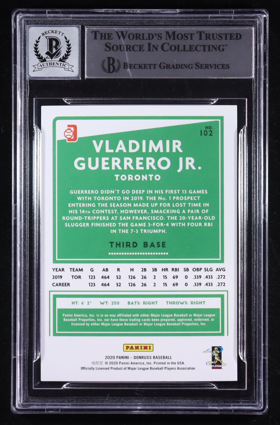 Vladimir Guerrero Jr. Signed 2020 Donruss Variations #102 (BGS | Auto Grade 10)