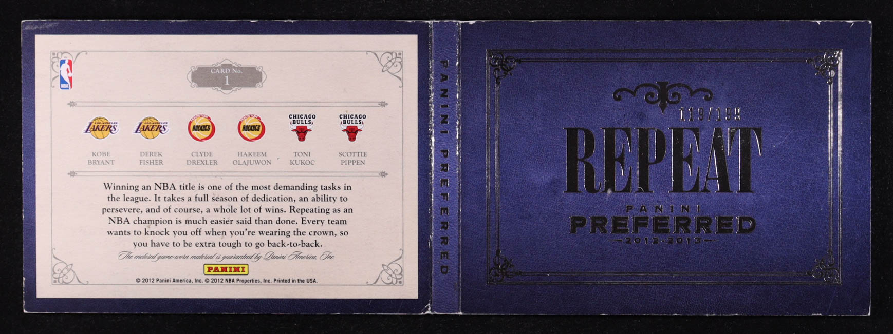 Scottie Pippen / Toni Kukoc / Clyde Drexler / Hakeem Olajuwon / Kobe Bryant / Derek Fisher 2012-13 Panini Preferred Repeat Memorabilia #1 #119/199