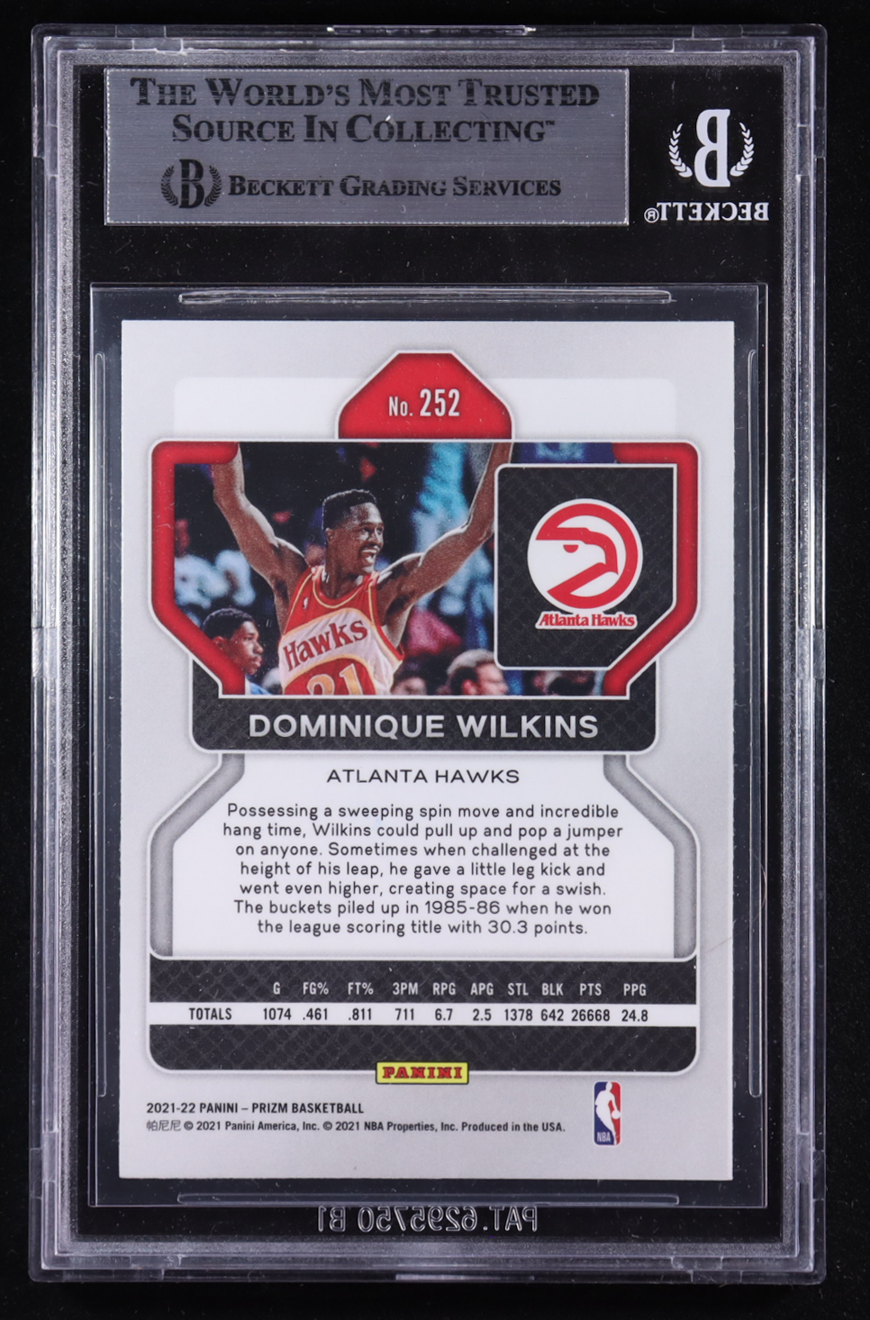 Dominique Wilkins Signed 2021-22 Panini Prizm #252 (BGS)