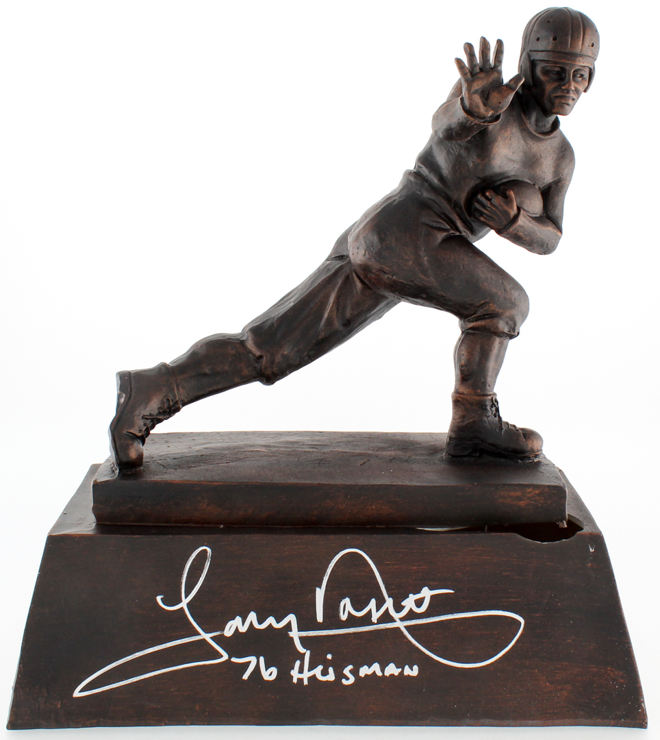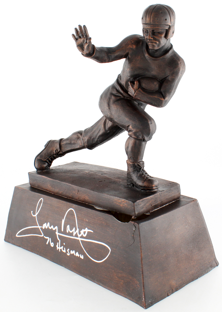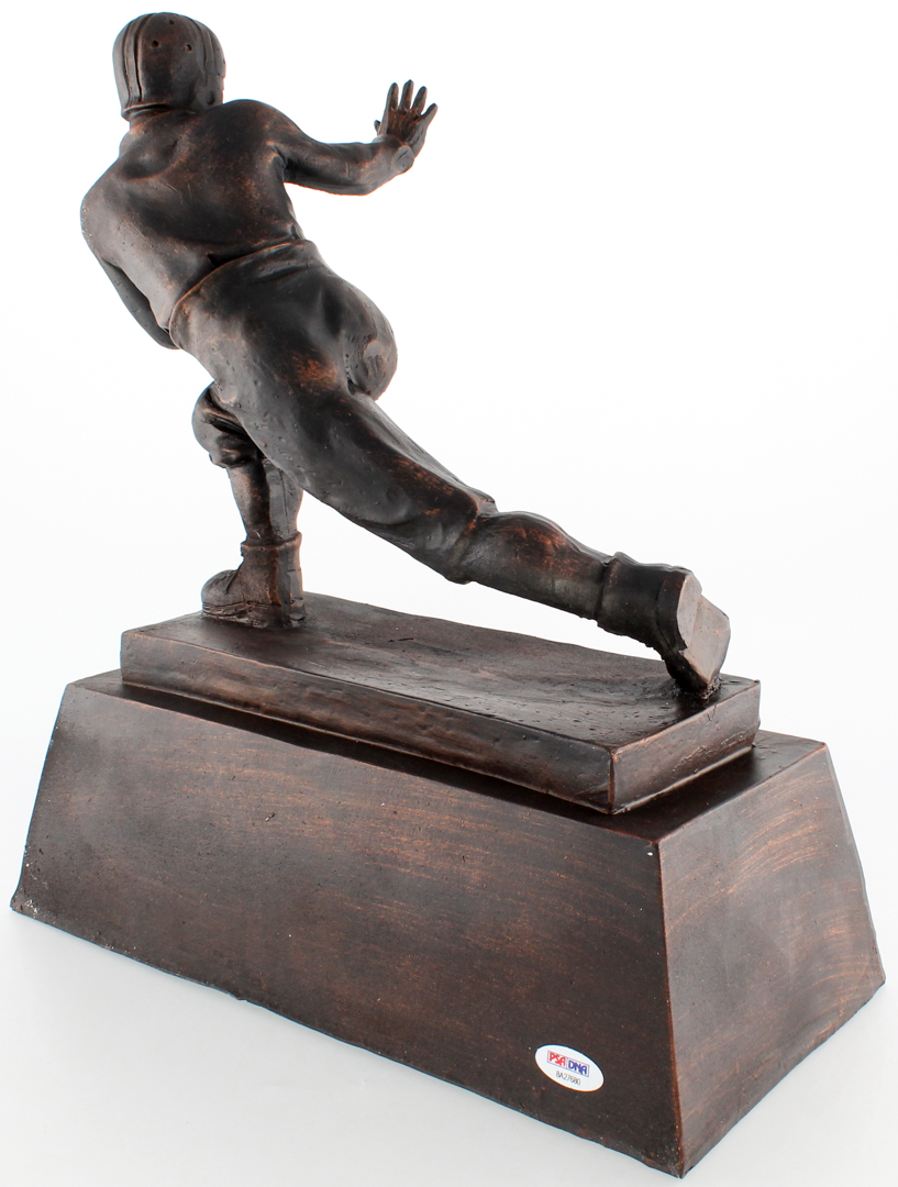 Replica trophy measures approximately 13.5" in height. Hand signed and inscribed in silver paint pen by Tony Dorsett (HOF). Please note trophy is cracked