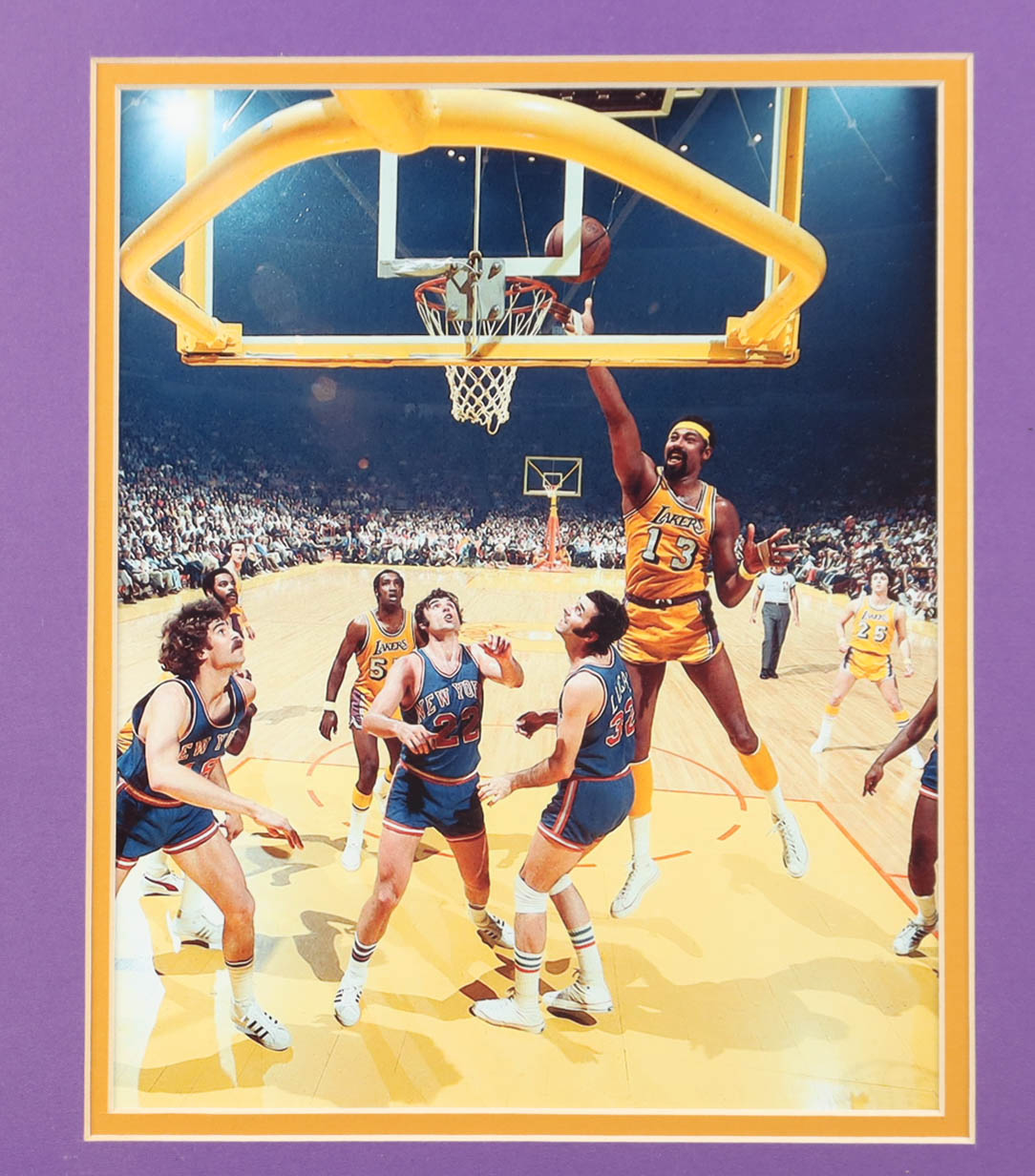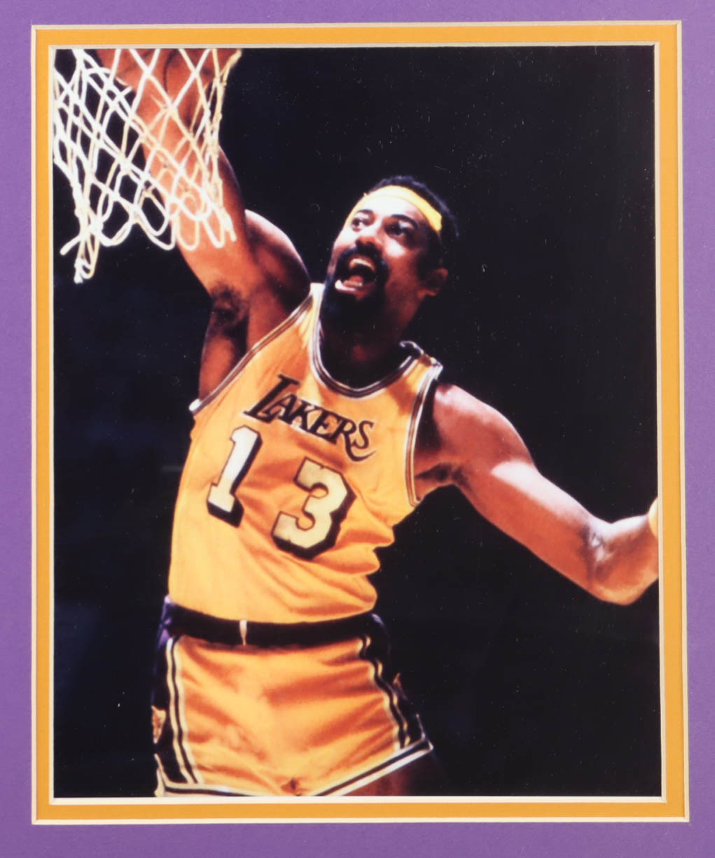 Custom frame measures 32" x 43" in size and features a Wilt Chamberlain (D. 1999, HOF) jersey. Display also includes (2) 8" x 10" photos. Please see photos for more details regarding the condition of the item. Note that the item is unsigned.