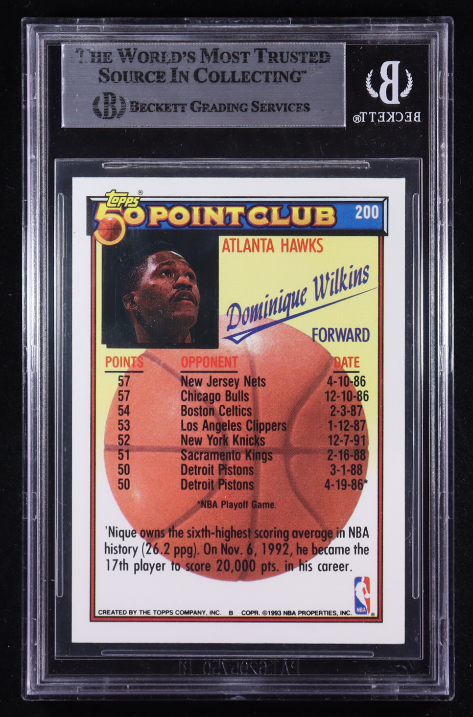 Dominique Wilkins Signed 1992-93 Topps #200 50P (BGS)