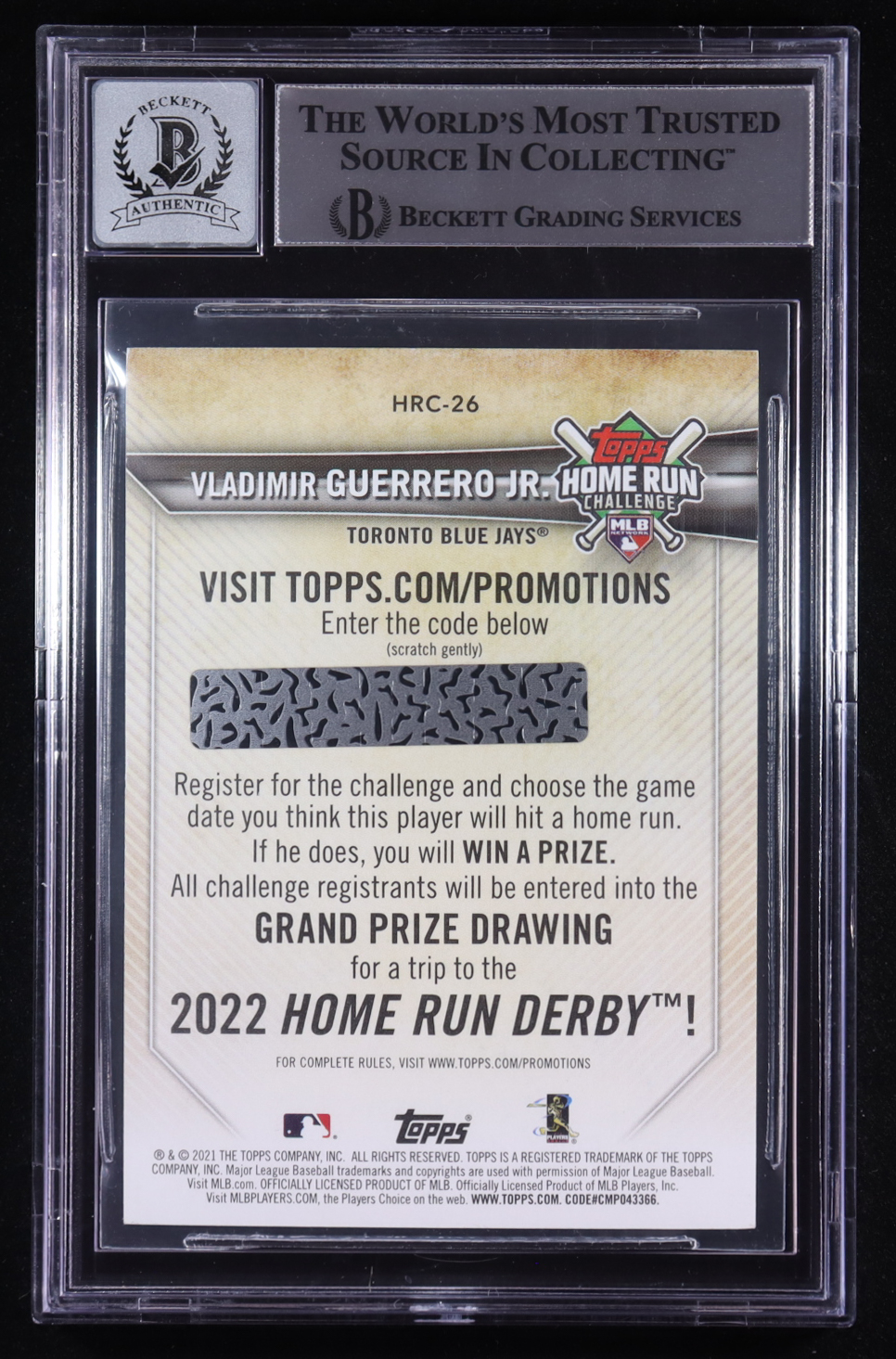 Vladimir Guerrero Jr. Signed 2021 Topps Home Run Challenge Code Cards #HRC26 (BGS | Auto Grade 10)