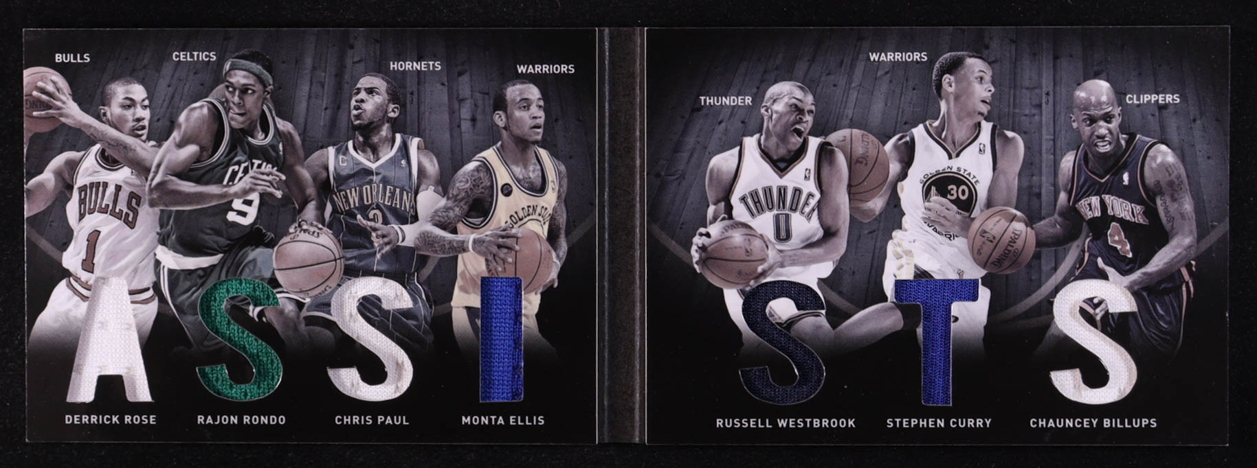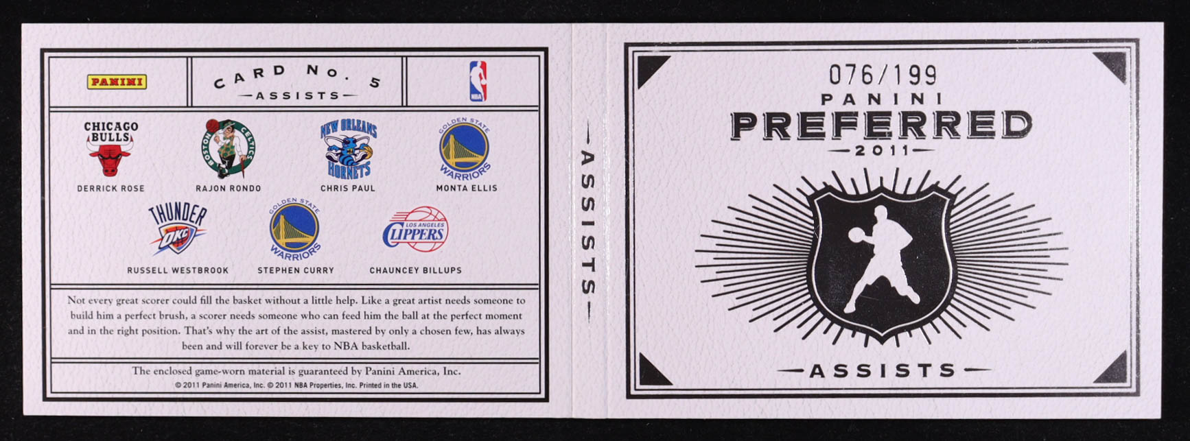Derrick Rose / Chauncey Billups / Monta Ellis / Rajon Rondo / Russell Westbrook / Chris Paul / Stephen Curry 2011-12 Panini Preferred Assists Memorabilia #5 #076/199