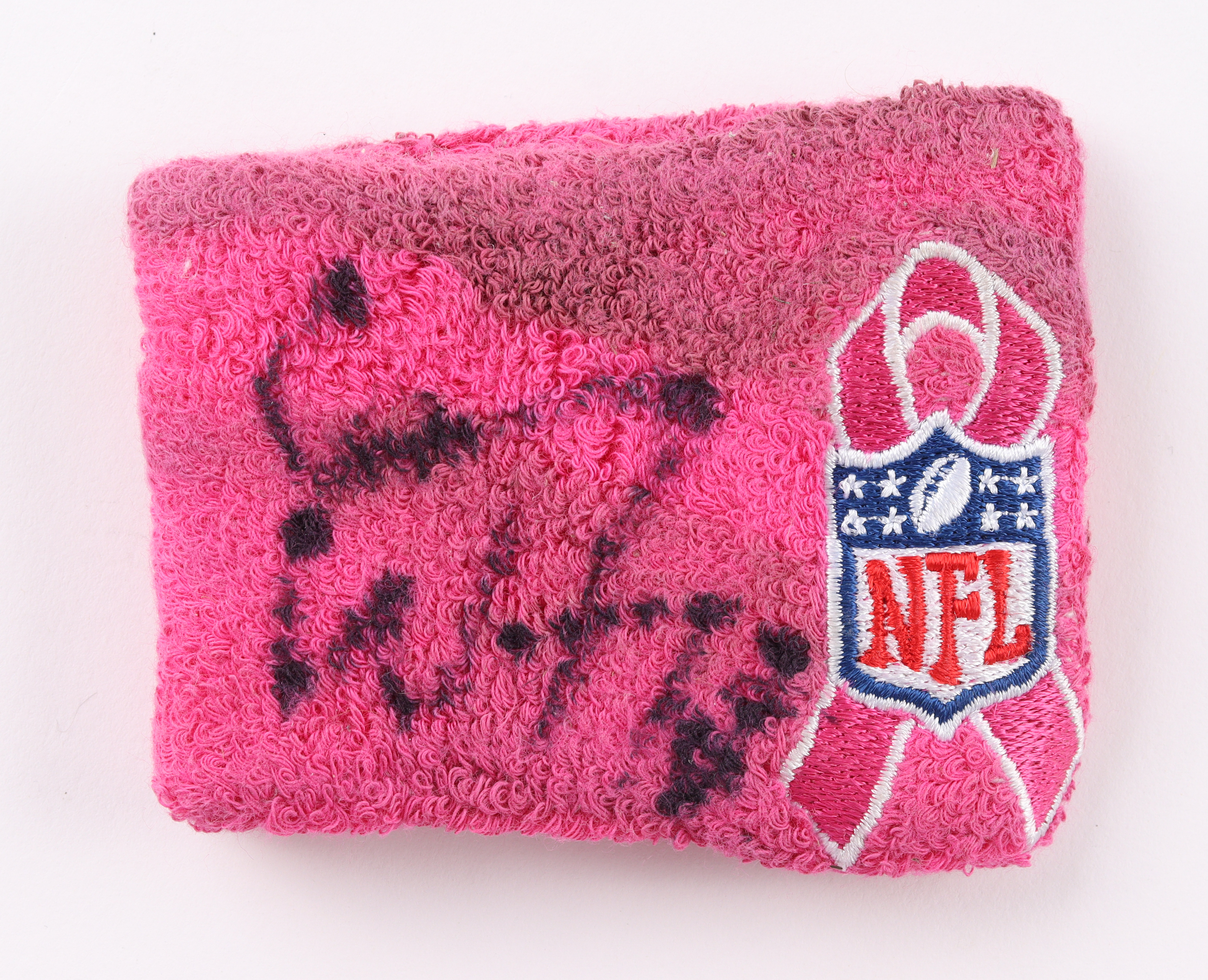 Game-used wristband has been hand-signed by Carson Wentz (Philadelphia Eagles). Game-used on October 7, 2018.