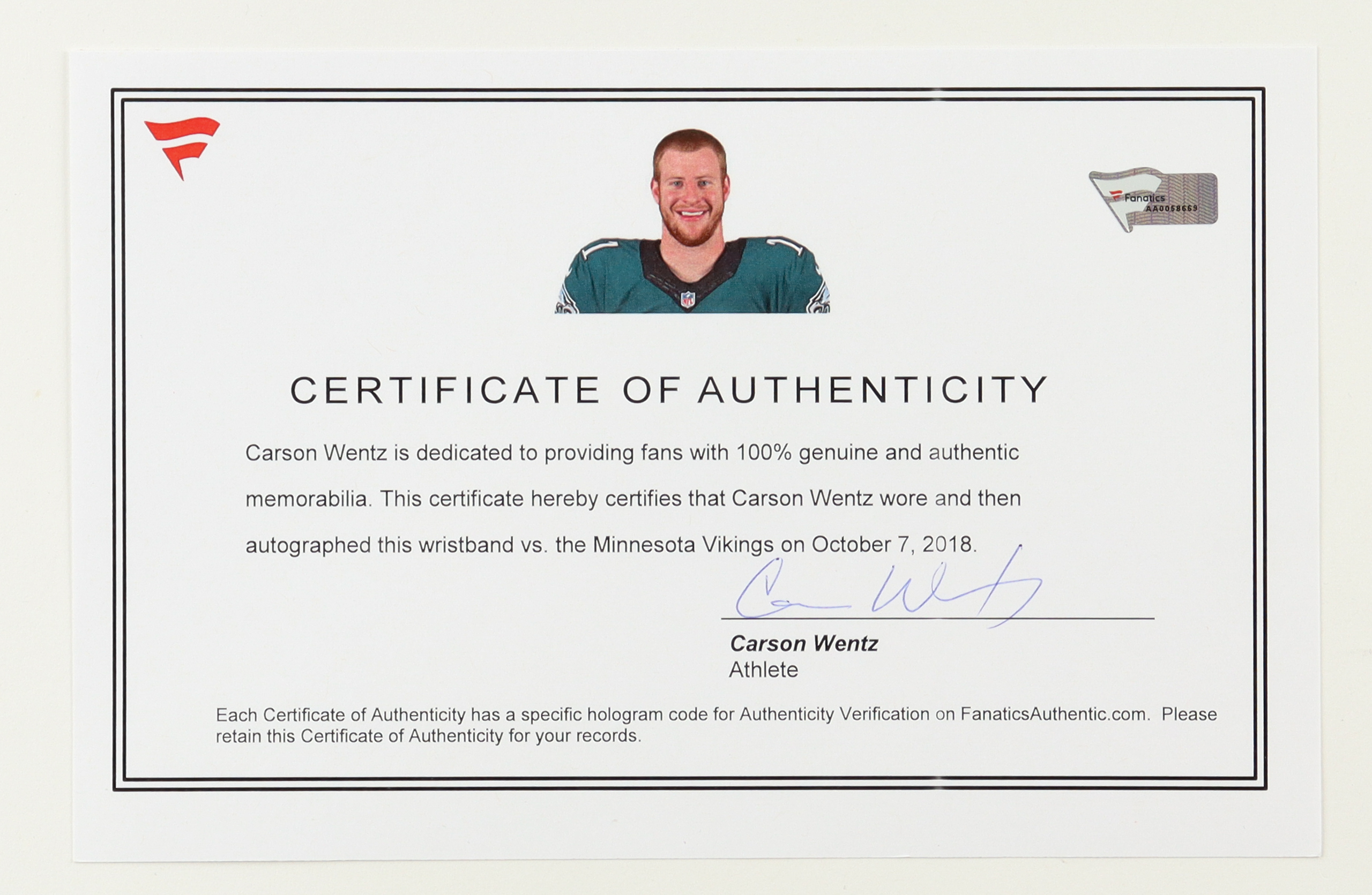 COA Signed By Carson Wentz
