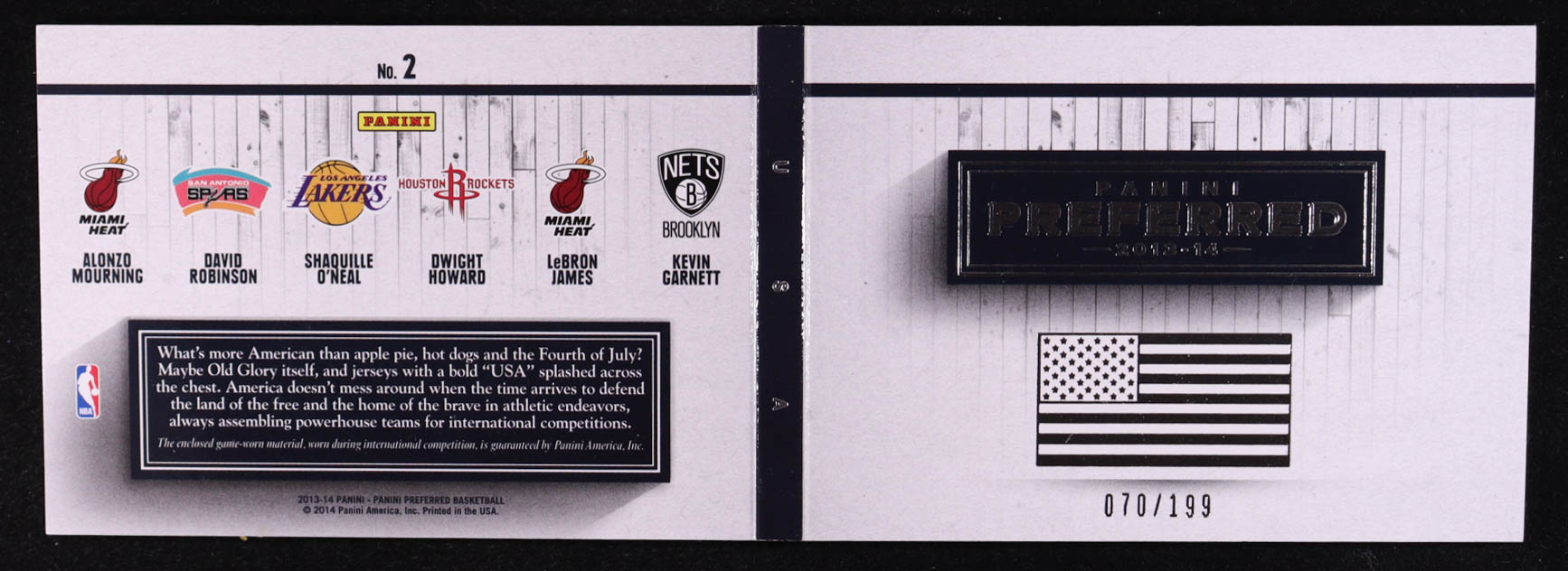 Dwight Howard / Shaquille O'Neal / Alonzo Mourning / David Robinson / Kevin Garnett / LeBron James 2013-14 Panini Preferred USA Memorabilia #2 #070/199