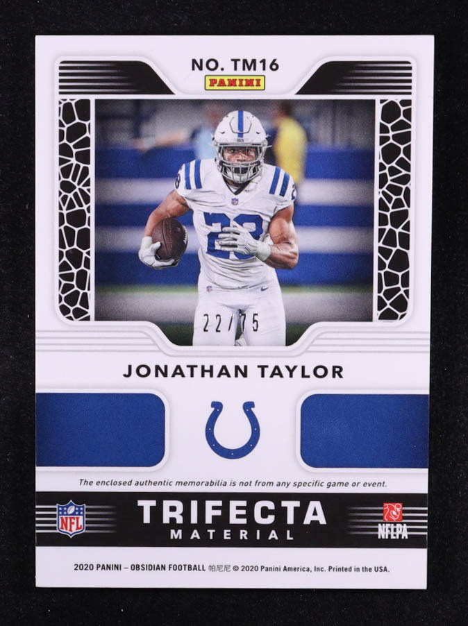 Jonathan Taylor 2020 Panini Obsidian Trifecta Materials Electric Etch Orange #16 #22/75 RC