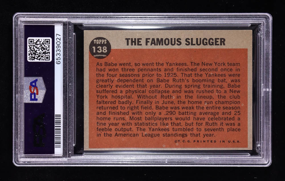 The Famous Slugger 1962 Topps #138 Babe Ruth Special 4 (PSA 6)