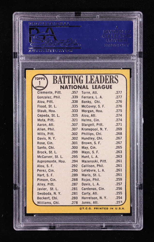 Roberto Clemente / Tony Gonzalez / Matty Alou 1968 Topps #1 NL Batting Leaders (PSA 7)