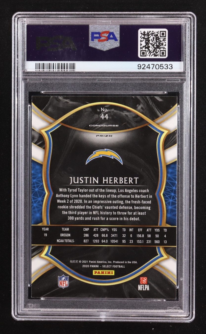 Justin Herbert 2020 Panini Select Concourse Silver Prizm #44 RC (PSA 10)