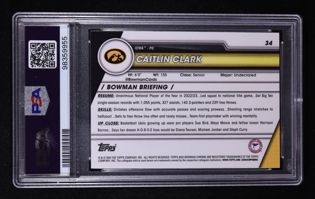 Caitlin Clark 2023-24 Bowman Chrome University #34 (PSA 8)