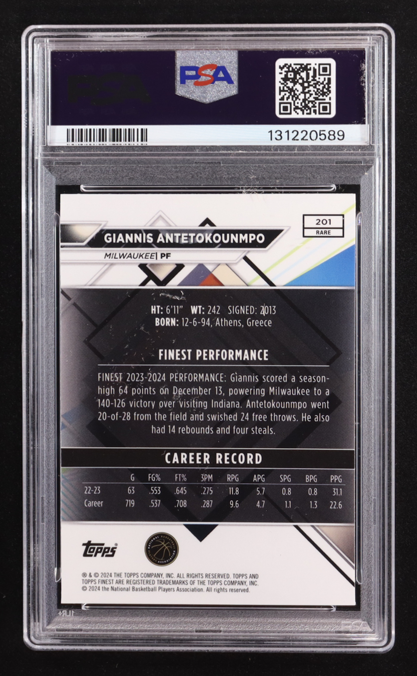 Giannis Antetokounmpo 2023 Topps Finest Purple Checkerboard #201 #36/75 (PSA 10 | Autograph Graded PSA 10)