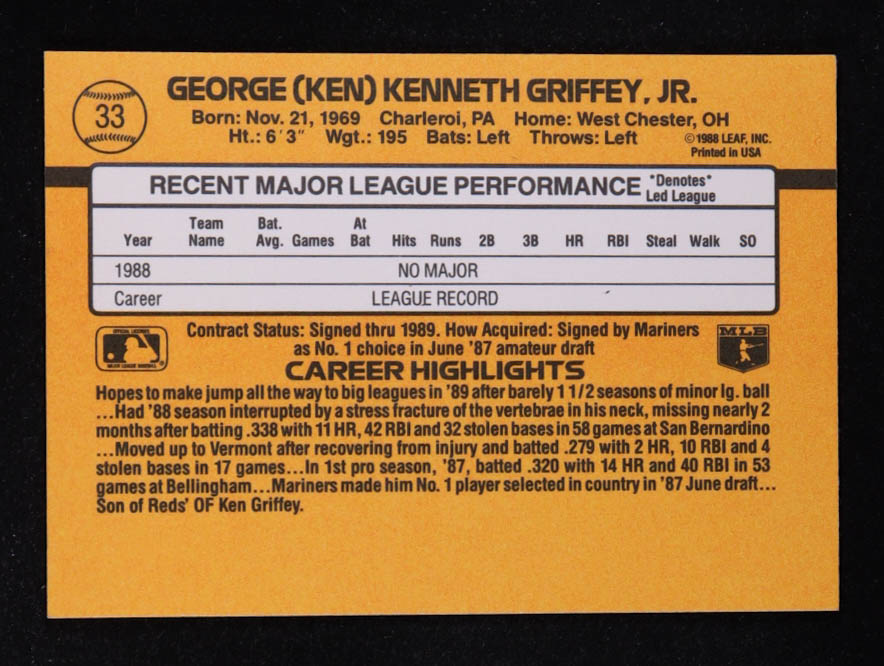 Ken Griffey Jr. 1989 Donruss #33 RR RC