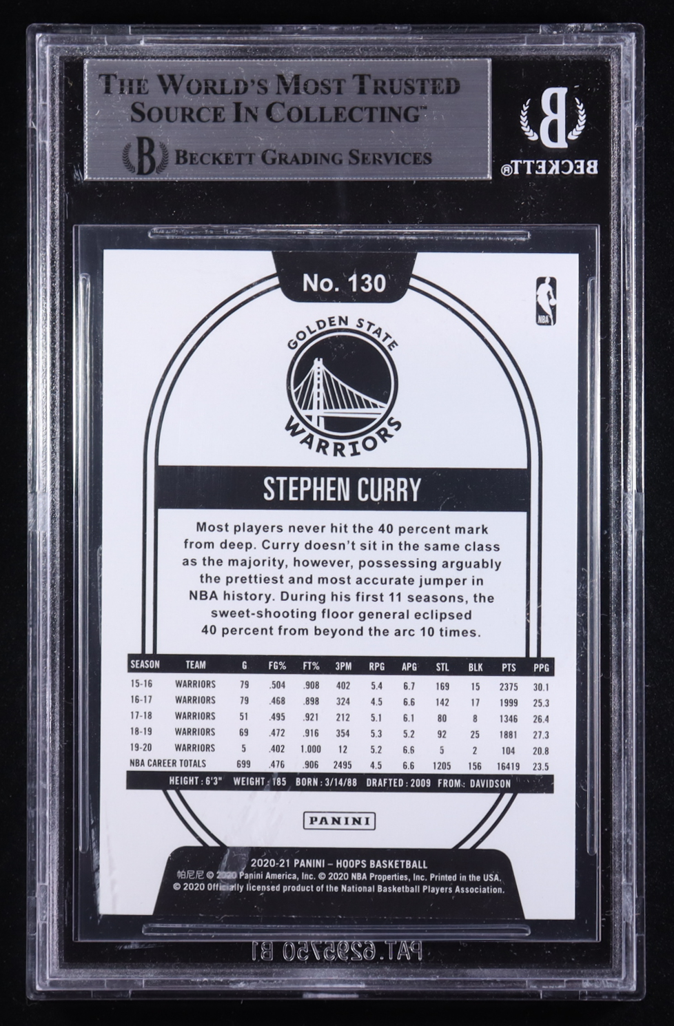 Stephen Curry Signed 2020-21 Hoops #130 (BGS)