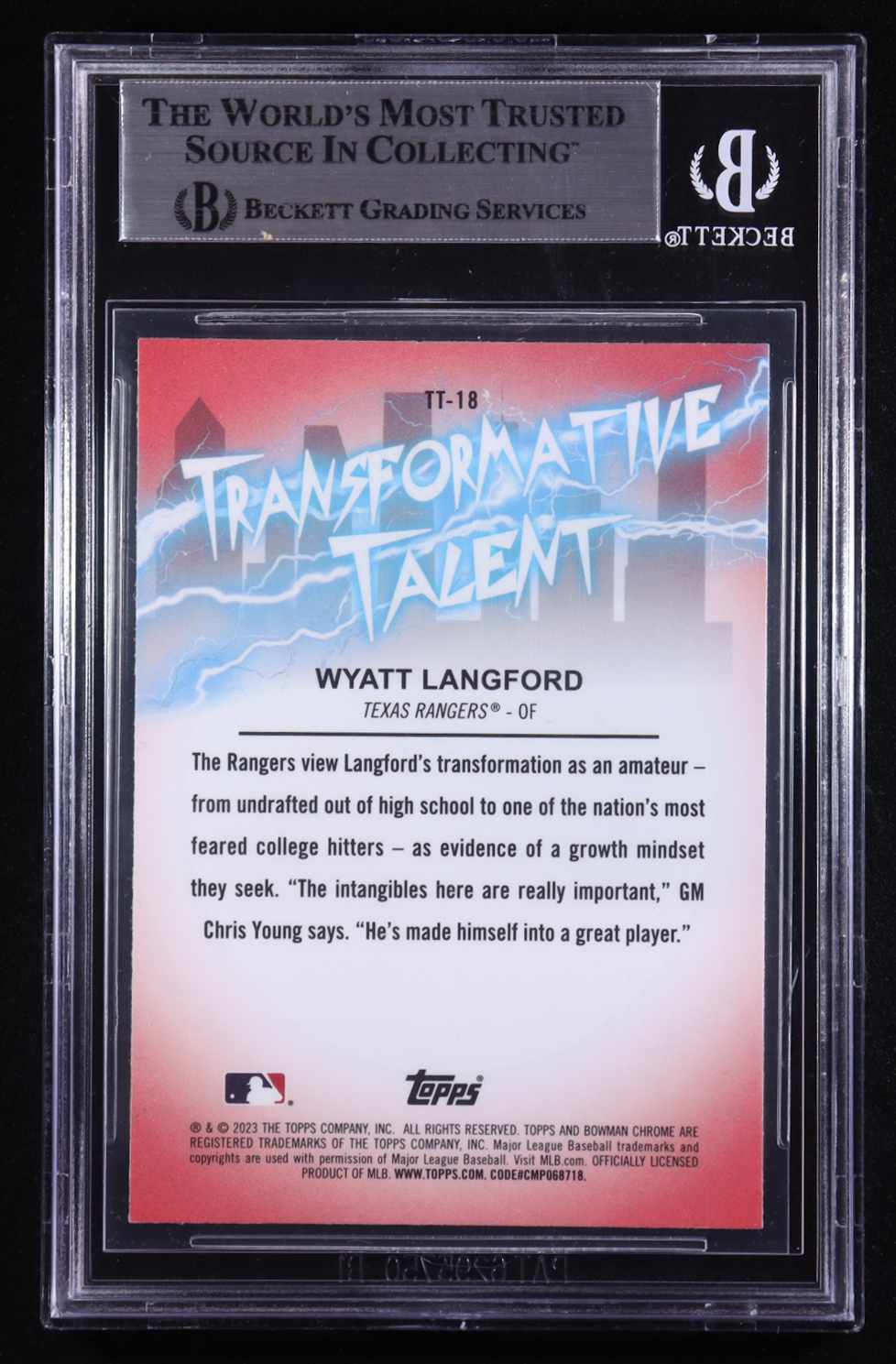 Wyatt Langford Signed 2023 Bowman Chrome Draft Transformative Talent #TT18 (BGS)