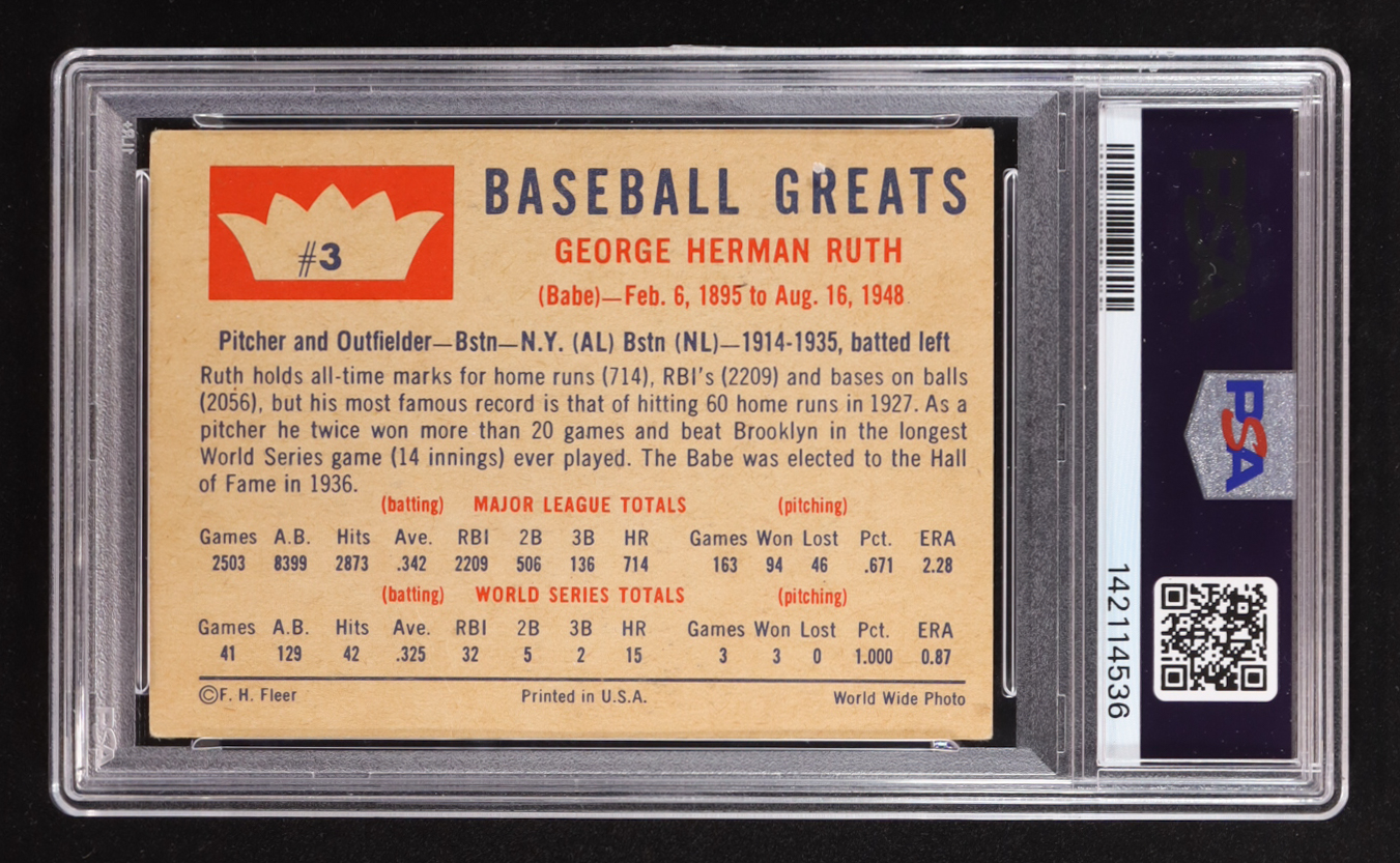 Babe Ruth 1960 Fleer Baseball Greats #3 (PSA 2)