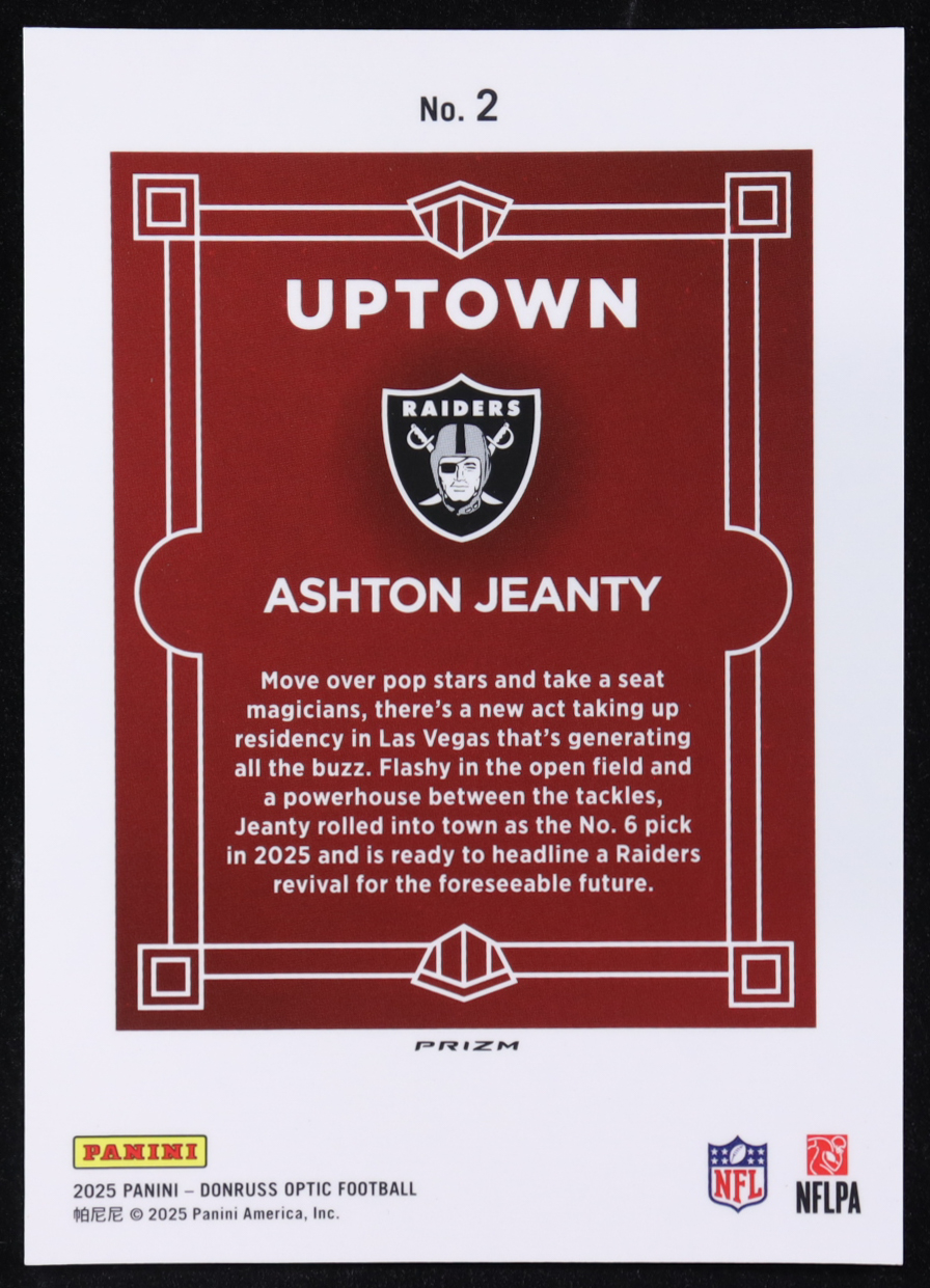 Ashton Jeanty 2025 Donruss Optic Uptown #2 RC