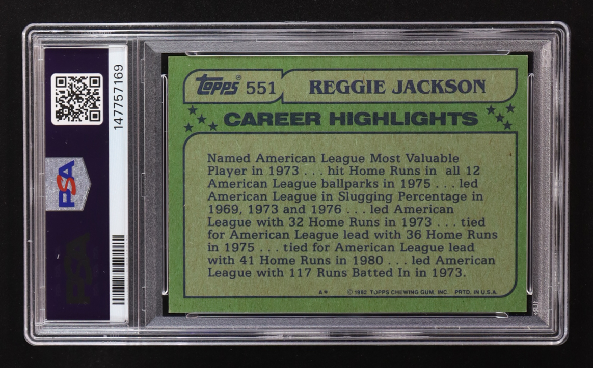 Reggie Jackson 1982 Topps AS #551 (PSA 8)