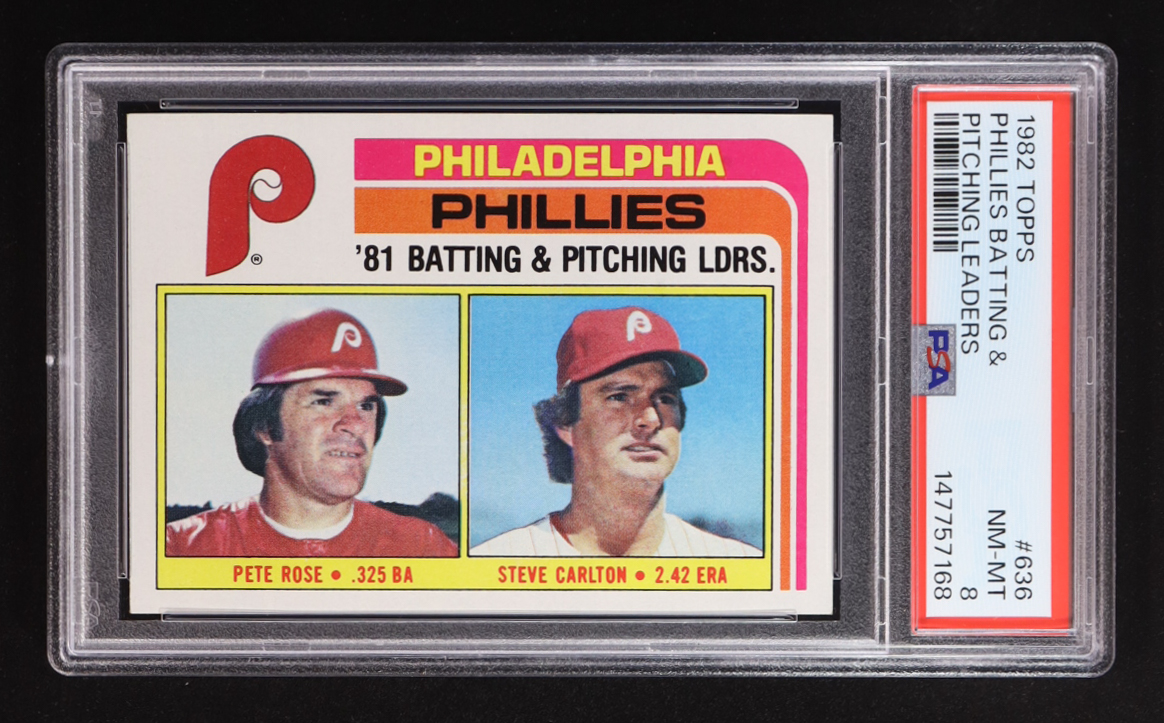 Pete Rose / Steve Carlton 1982 Topps TL #636 (PSA 8)